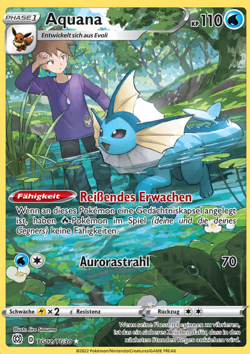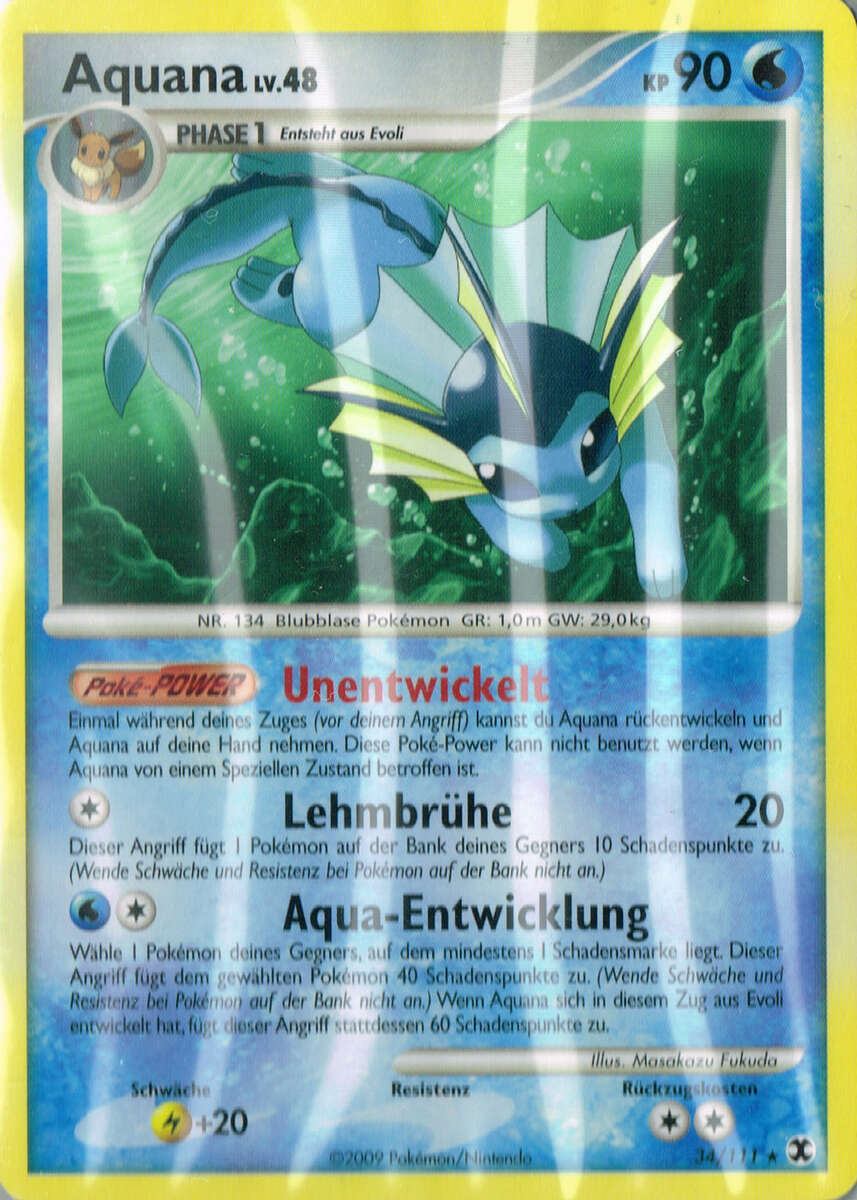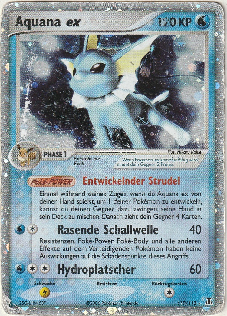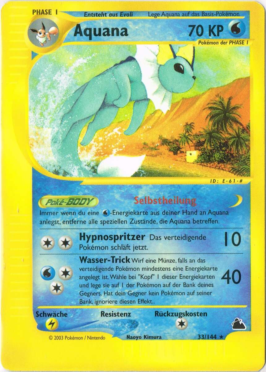 - RS AQUANA hat eine spontane Mutation durchlaufen. Ihm sind Flossen und Kiemen gewachsen. Dadurch kann es unter Wasser leben. Dieses POKéMON kann Wasser nach Belieben manipulieren.