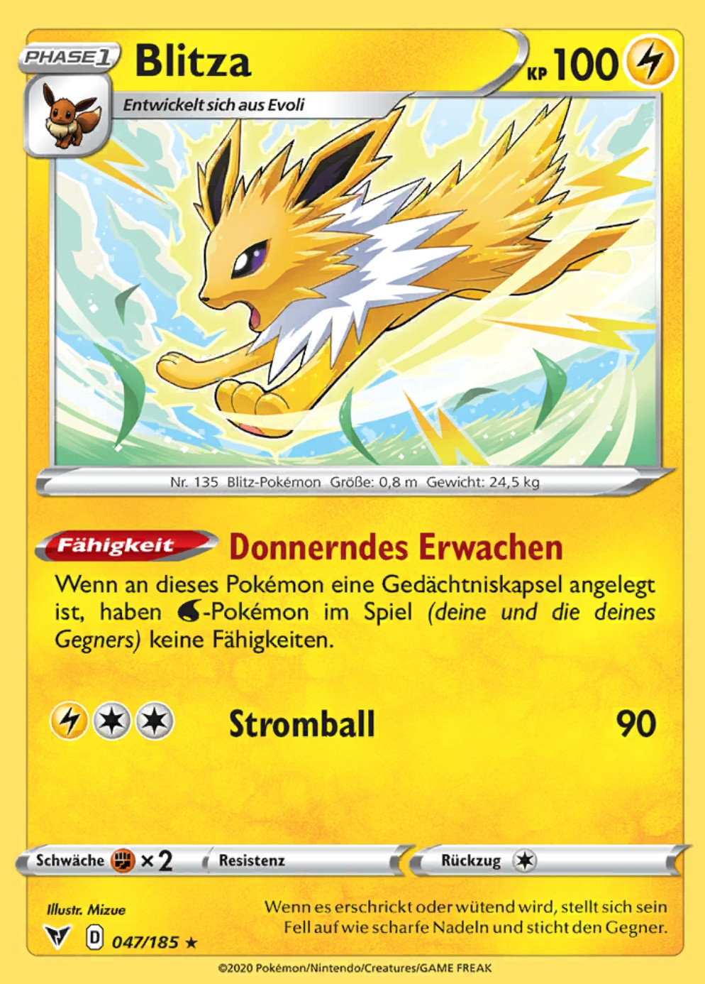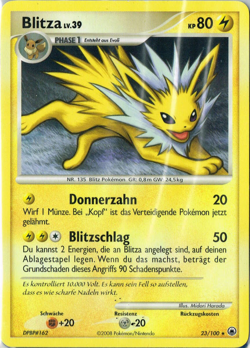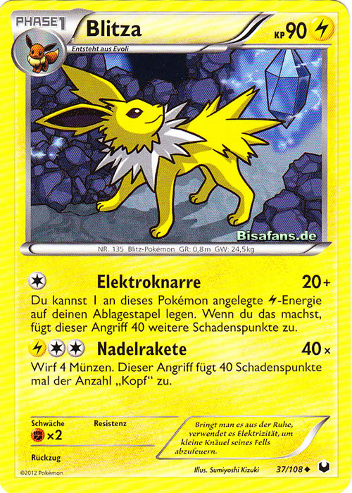 - BG Dieses POKéMON entzieht der Atmosphäre Ionen, die es in Blitze von 10 000 Volt Stärke umwandelt.
