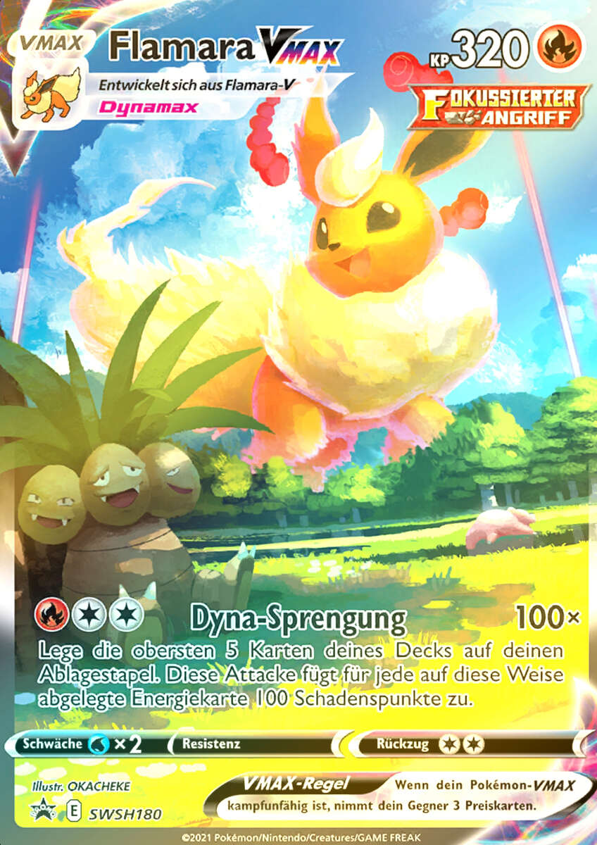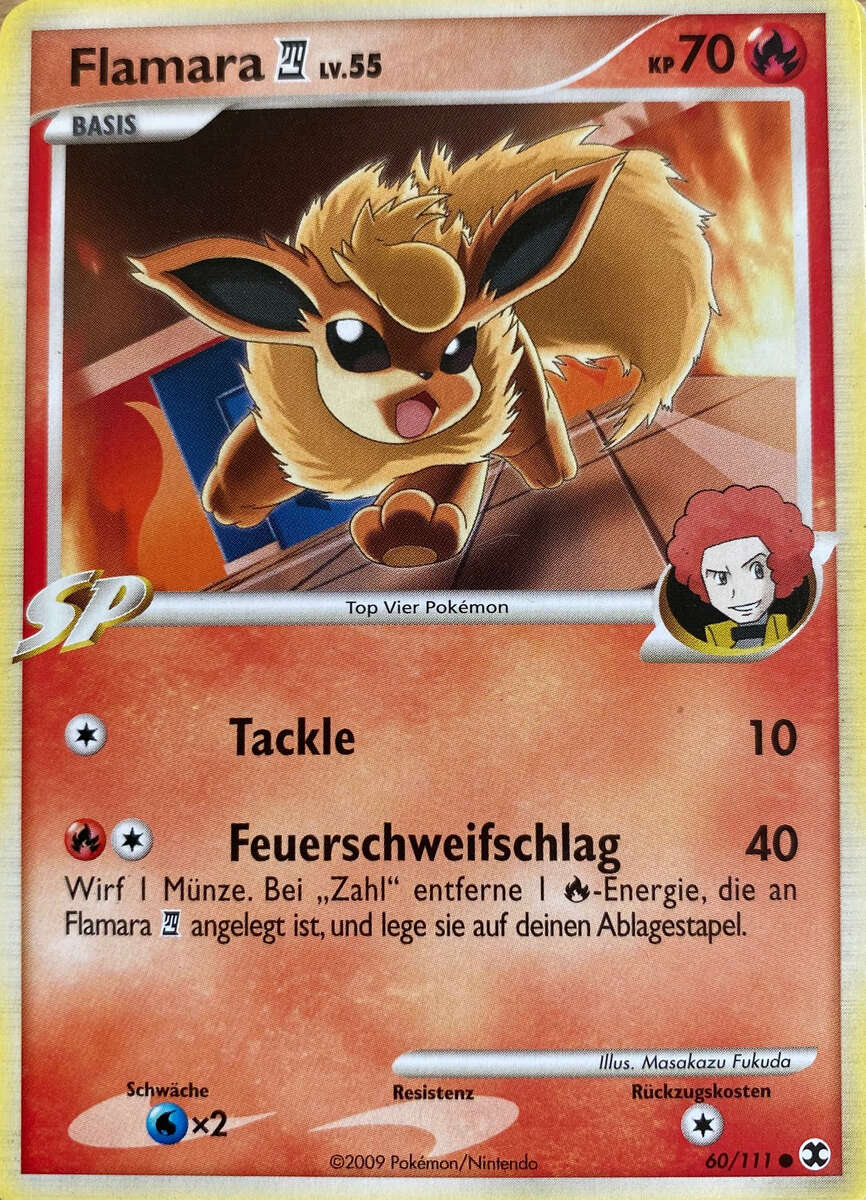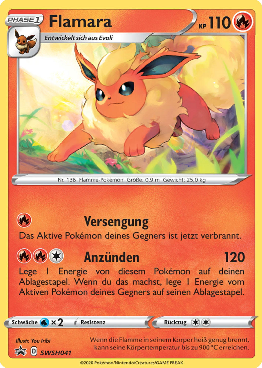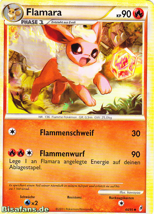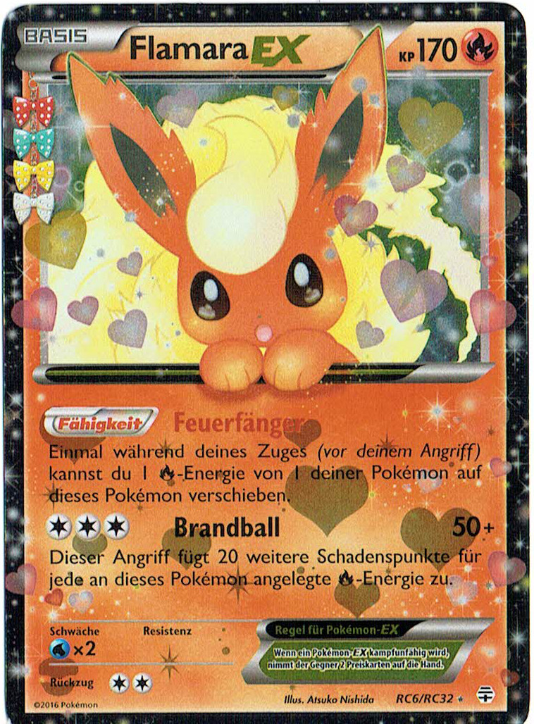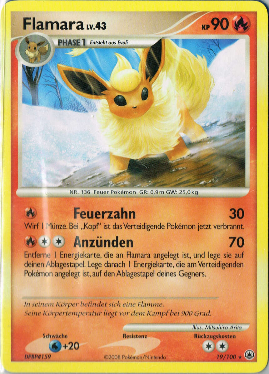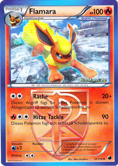 - S FLAMARAs flauschiges Fell gibt Hitze an die Luft ab, damit sein Körper nicht zu heiß wird. Die Körpertemperatur dieses PKMN kann bis auf 900 Grad ansteigen.