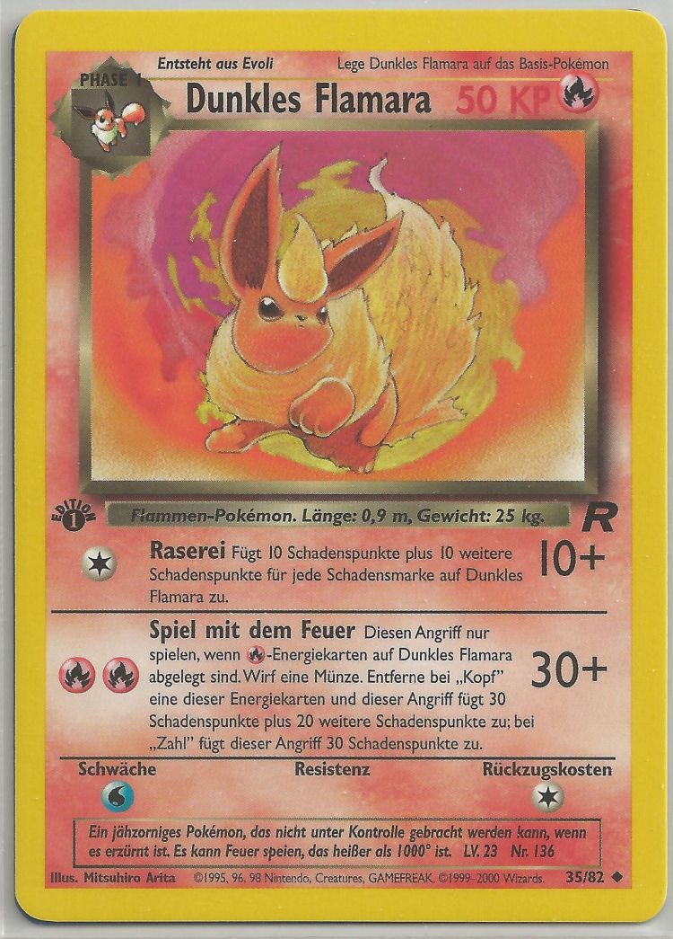 - G Der Körper dieses Pokémon ist wie eine Brennkammer. Es holt Luft und speit 100 Grad heiße Flammen.
