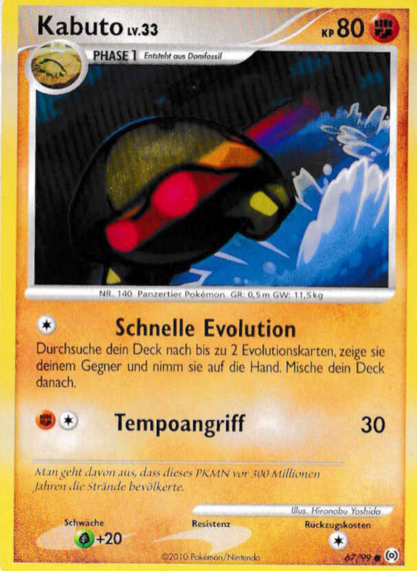 - RB Ein aus einem Fossil wiederbelebtes Urzeit-Pokémon, welches vor Äonen auf dem Meeresgrund lebte.