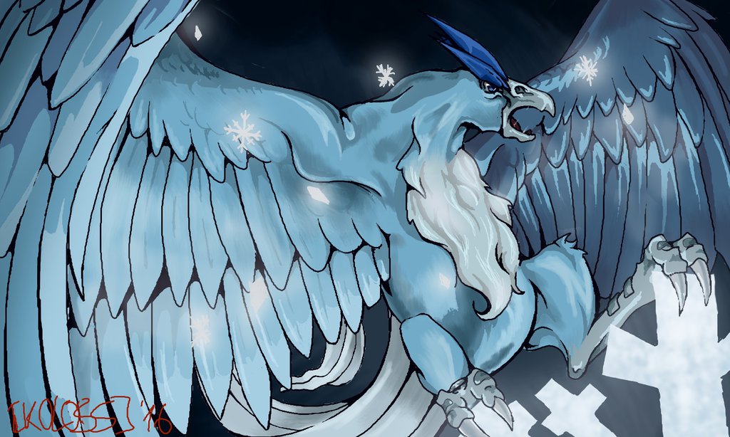 - SWKS Seine wunderschönen blauen Flügel sollen aus Eis bestehen. Es fliegt über schneebedeckte Berge, während sein langer Schweif hinter ihm flattert.