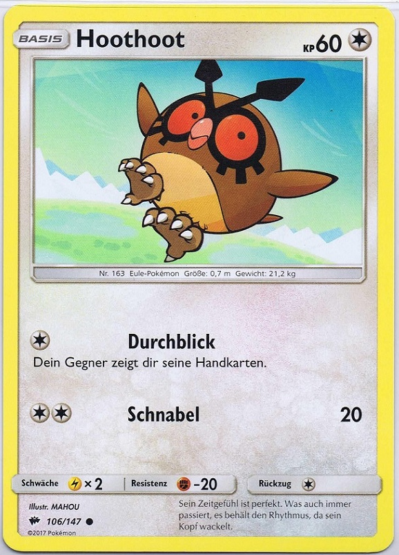 - UM Hoothoot ruft jeden Tag zur exakt gleichen Zeit. Früher wurde es daher als Bote der Zeitgottheit verehrt und geschätzt.
