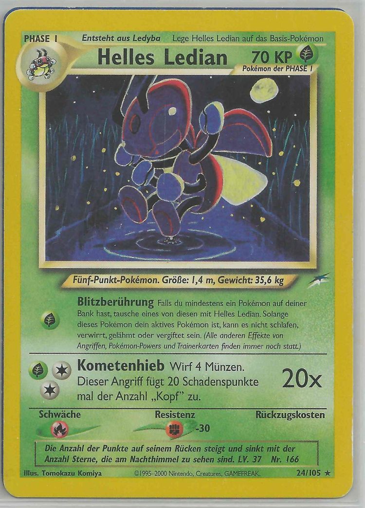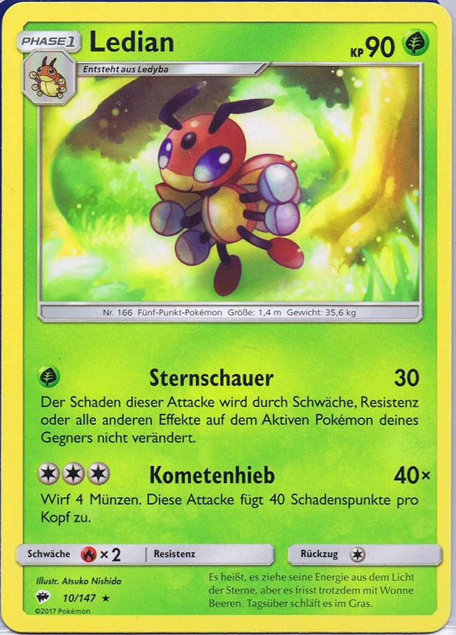 - RSS In Ländern mit frischer Luft und Sternen am Himmel leben unzählig viele LEDIAN. Dafür gibt es einen guten Grund: Dieses POKéMON nutzt das Licht der Sterne als Energie.