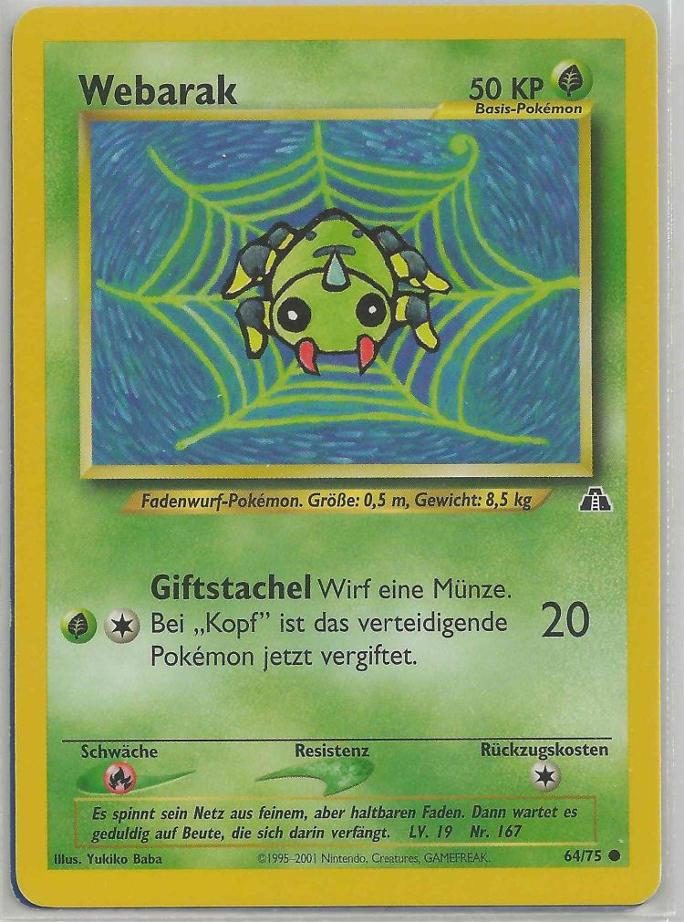 - RSS Das von WEBARAK gesponnene Netz ist sein zweites Nervensystem. Dieses POKéMON kann anhand der feinen Vibrationen der Netzfäden bestimmen, welche Art Beute sich darauf befindet.