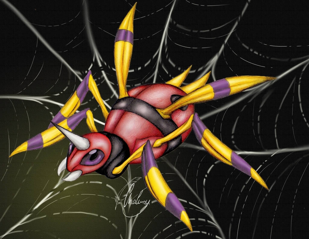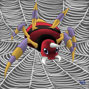 - S ARIADOS hat kleine hakenförmige Krallen an seinen Füßen. Damit kann es an Decken und Wänden entlang flitzen. Es erdrückt seine Gegner mit starkem Seidenfaden.