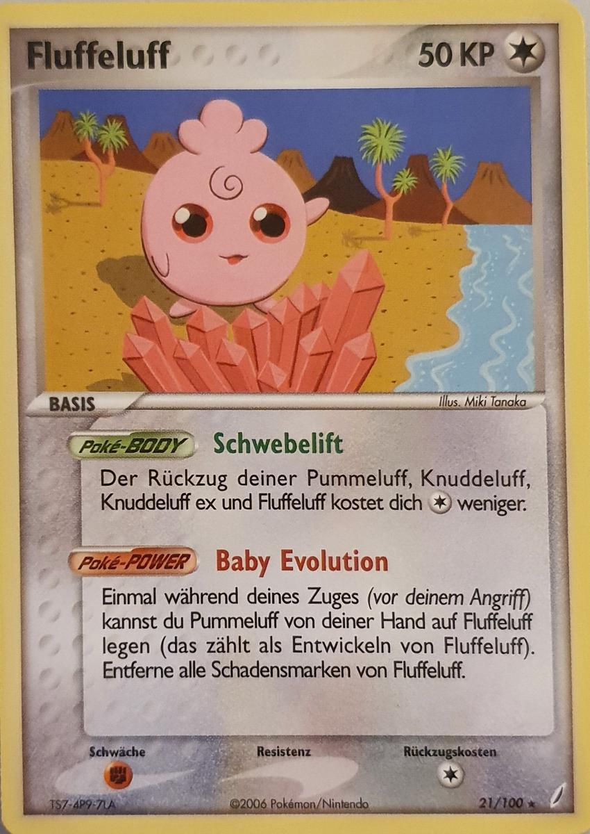 - OR Fluffeluffs Stimmbänder sind noch nicht voll entwickelt. Wenn es zu viel singt, schmerzt ihm die Kehle. Dieses Pokémon gurgelt mit Süßwasser aus einem sauberen Fluss.