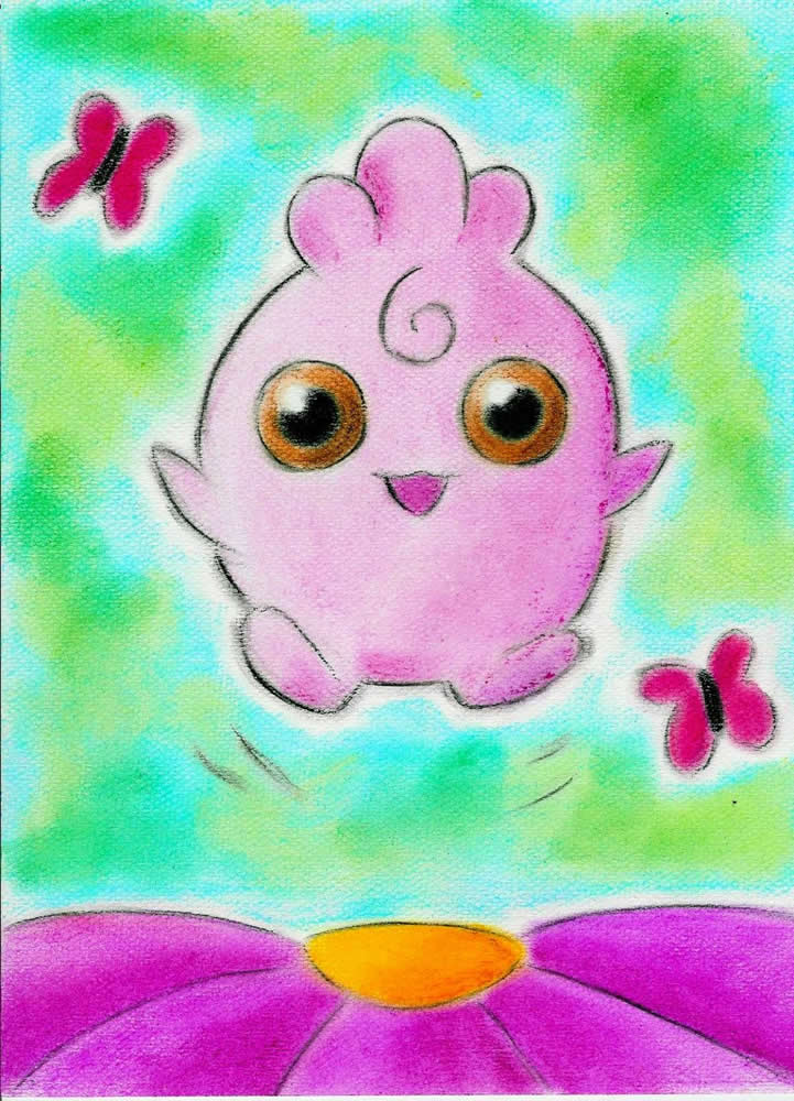 - SWRI Dieses Pokémon singt liebend gern. Von seinem Körper, der an ein Marshmallow erinnert, geht ein leicht süßlicher Duft aus.