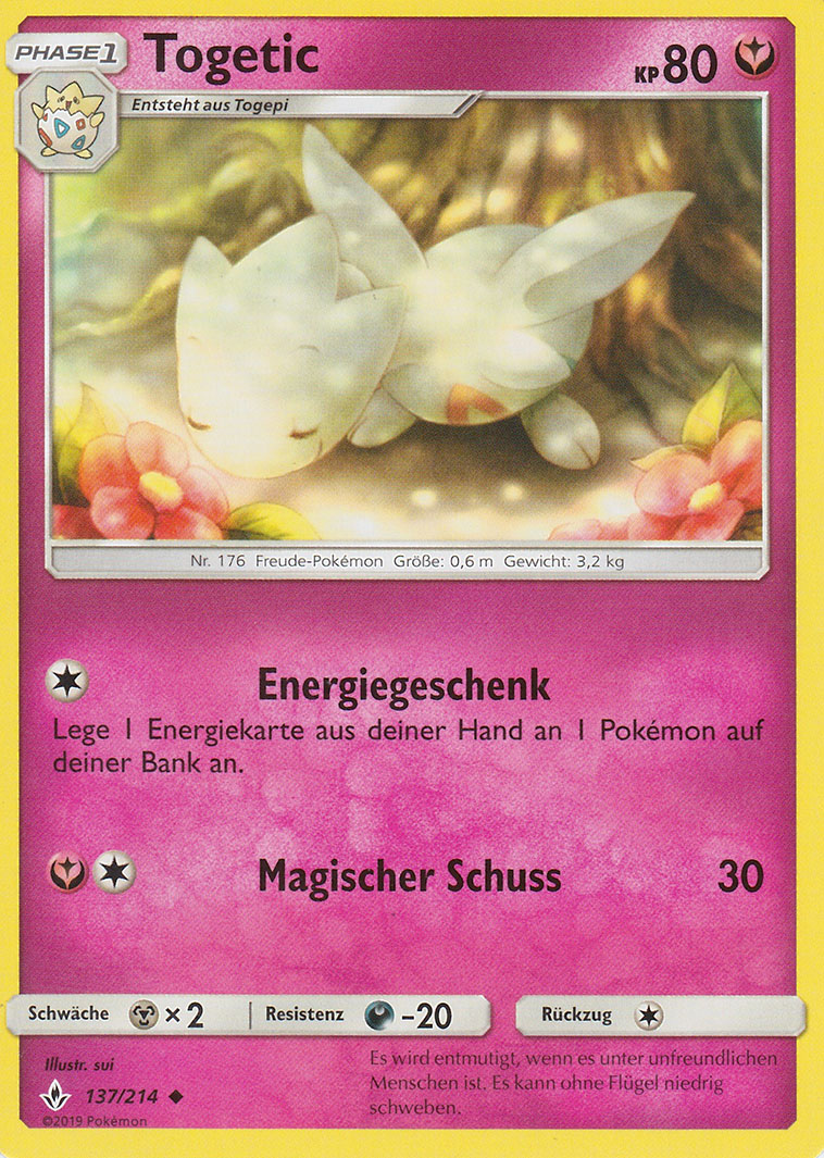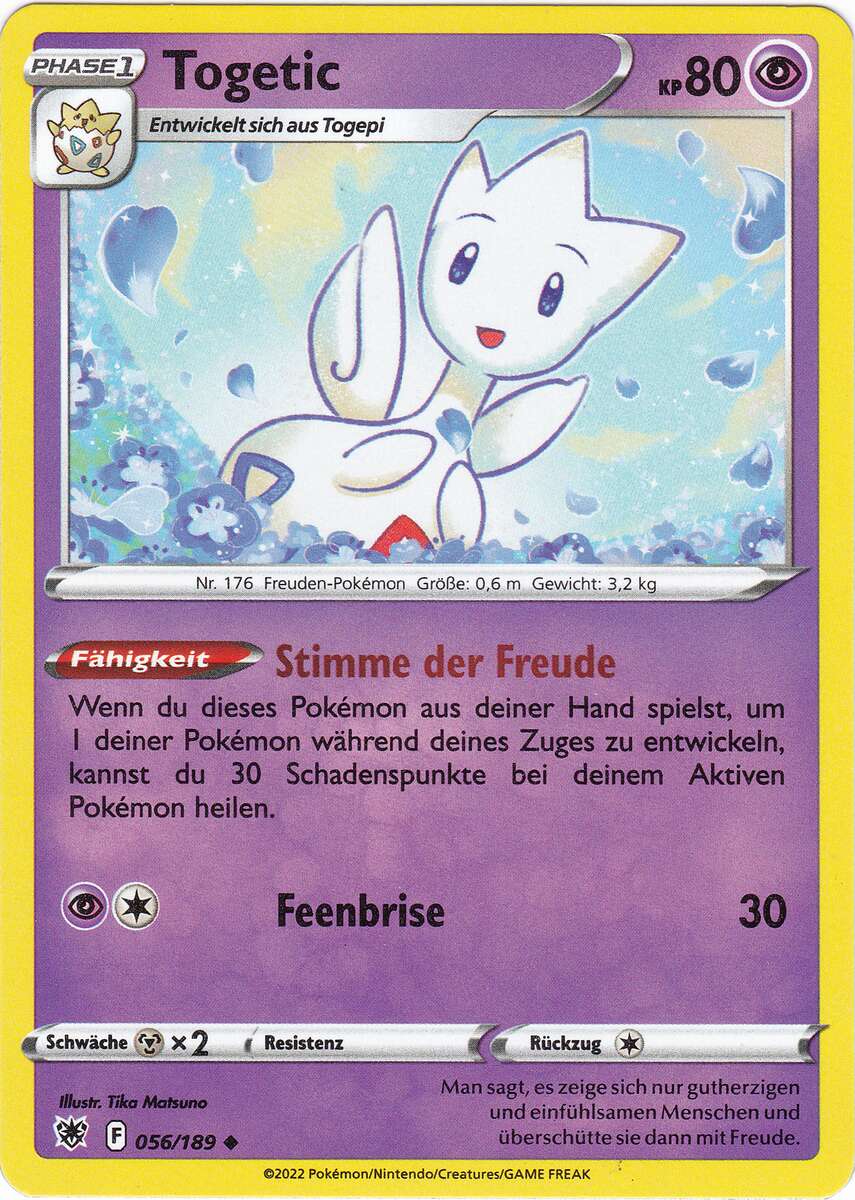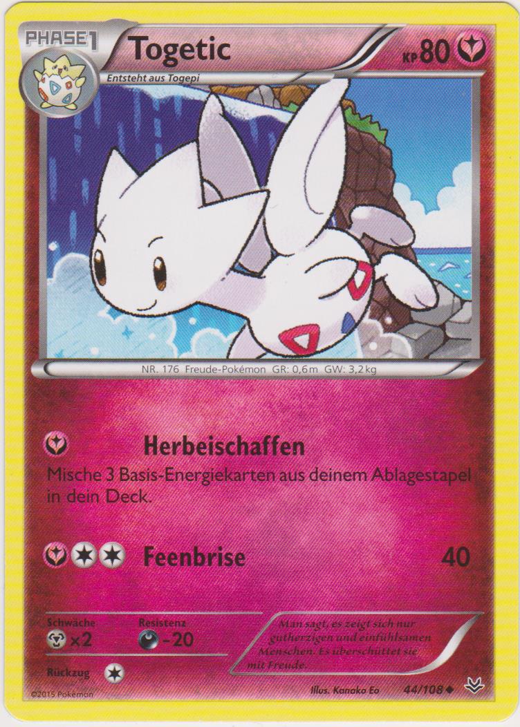 - AS Togetic ist ein Pokémon, das Glück bringt. Wenn es jemanden trifft, der gutherzig ist, teilt es seine Freude mit dieser Person.