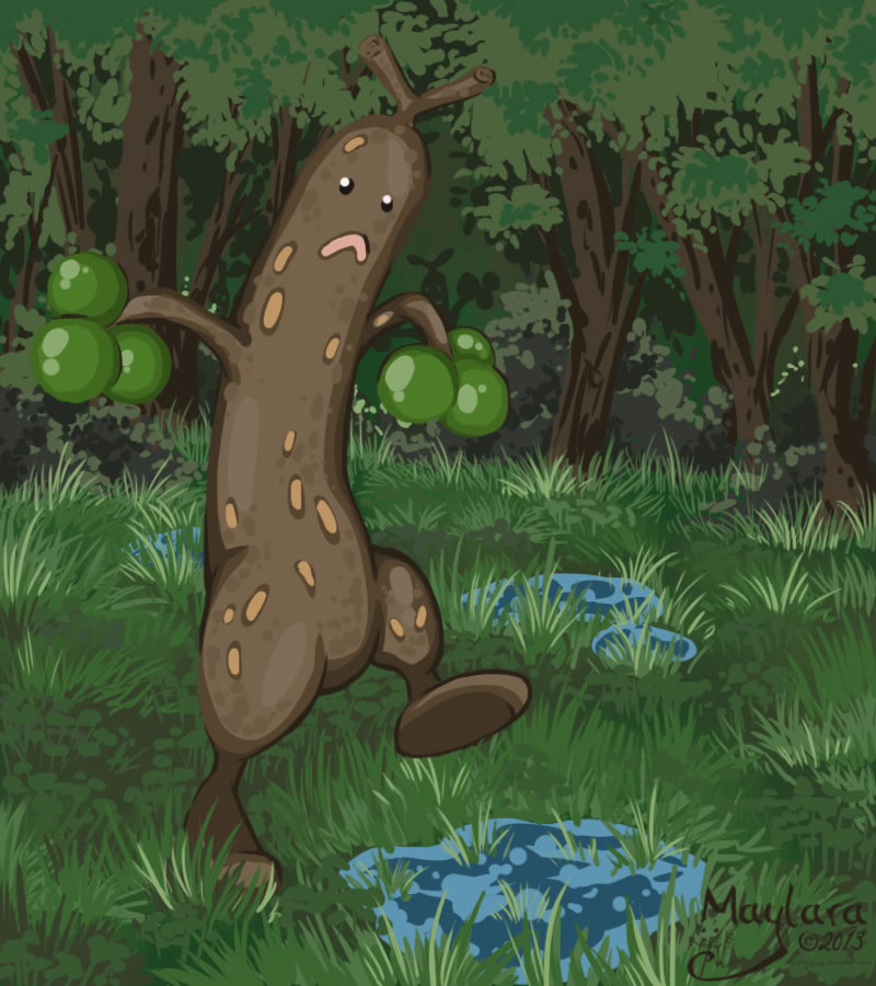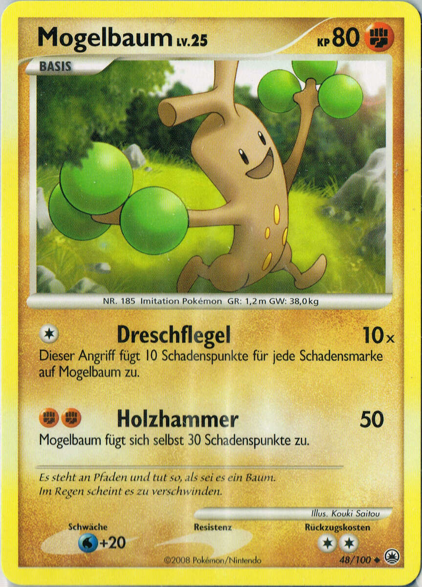 - NPS Mogelbaum kommt oft ins Basiscamp. Ich glaube, es will sich mit den Pokémon hier anfreunden. Einmal hat es versucht, sich als Baum getarnt zu nähern, aber dann hat es sich erschreckt und ist weggelaufen.