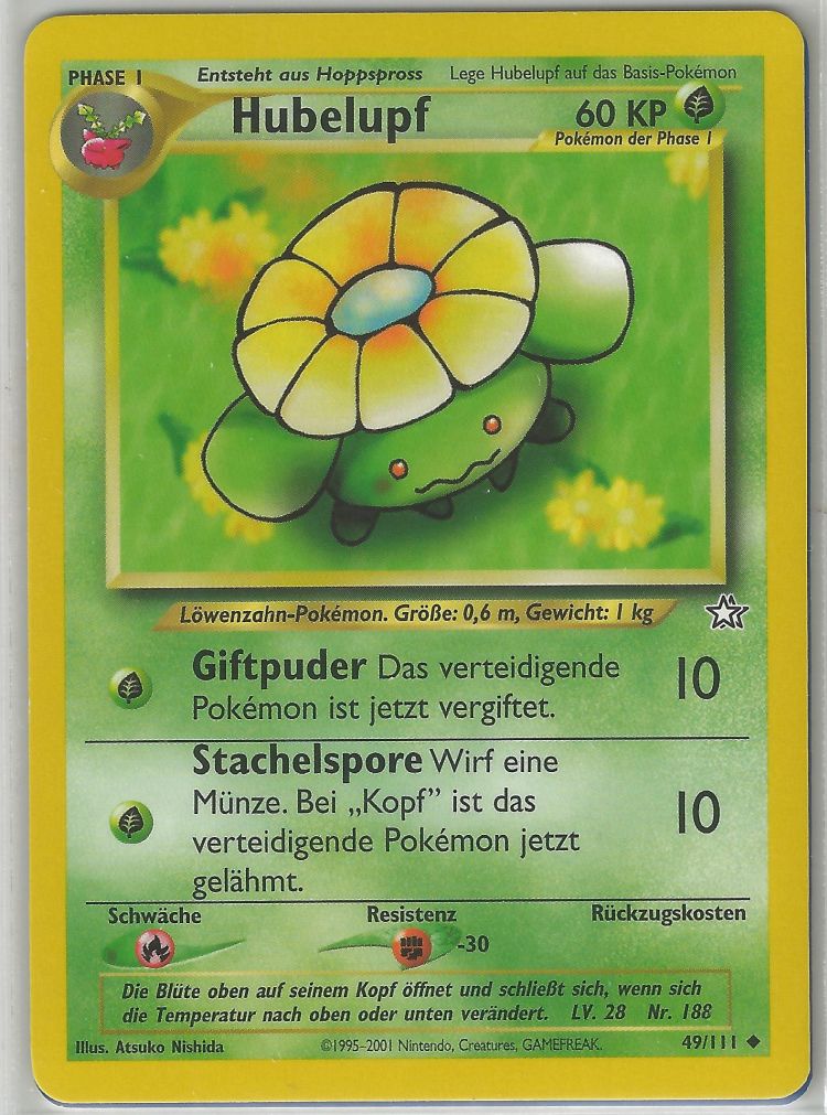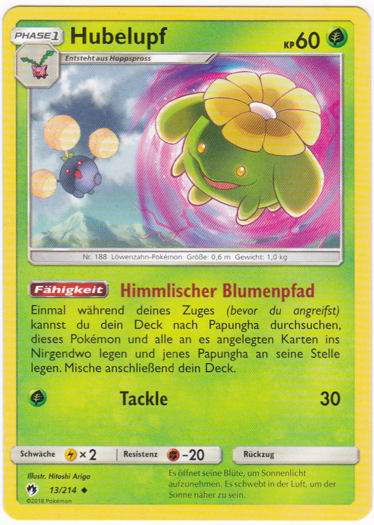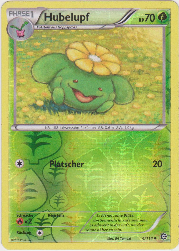 - S HUBELUPFs Blume beginnt zu blühen, wenn die Temperatur über 18 Grad steigt. Wie weit sich die Blume öffnet, hängt von der Temperatur ab. Daher wird dieses POKéMON manchmal als Thermometer eingesetzt.