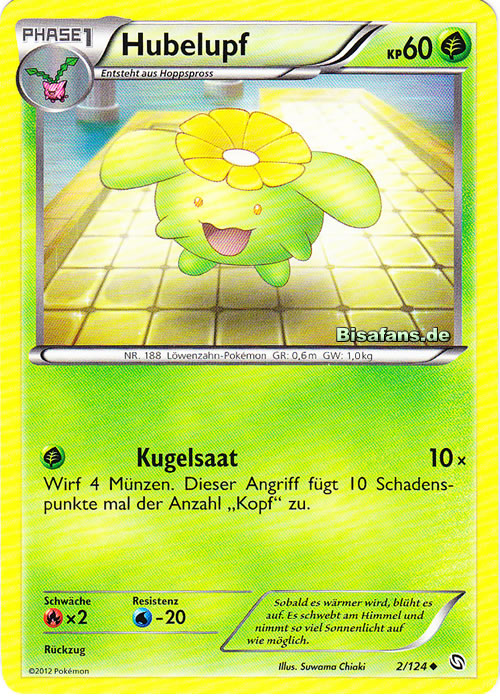 - AS Hubelupfs Blume beginnt zu blühen, wenn die Temperatur über 18 °C steigt. Wie weit sich die Blume öffnet, hängt von der Temperatur ab. Daher wird dieses Pokémon manchmal als Thermometer eingesetzt.