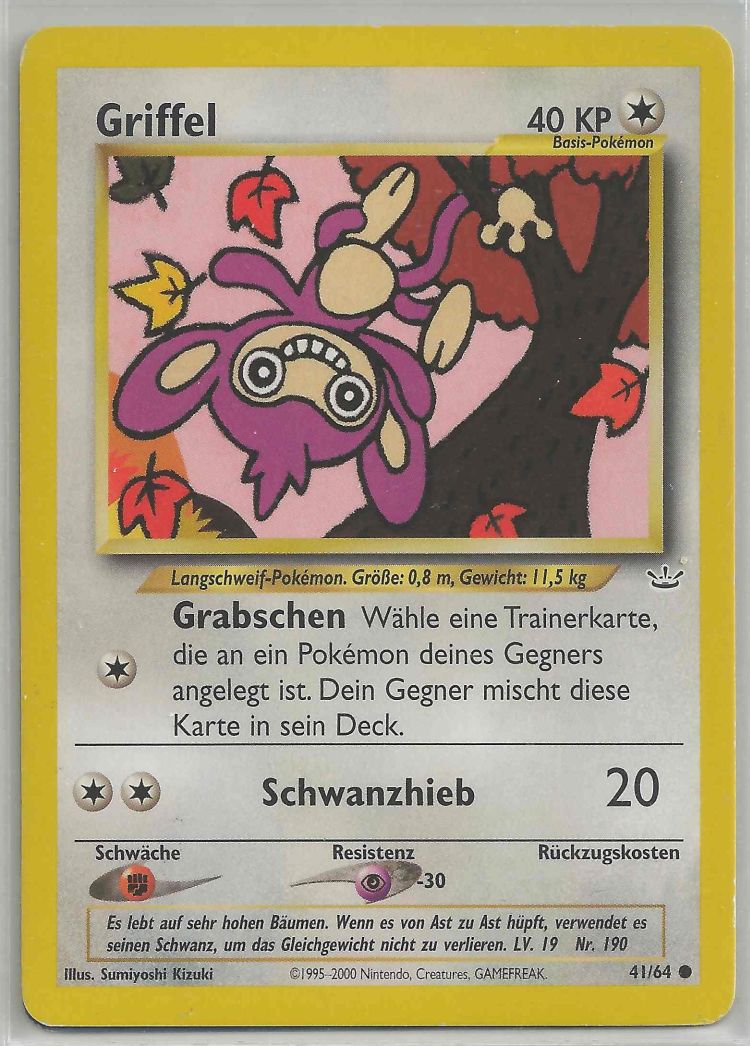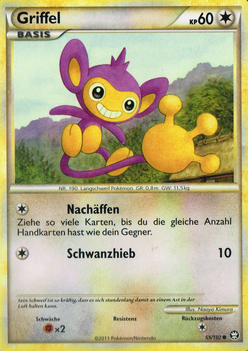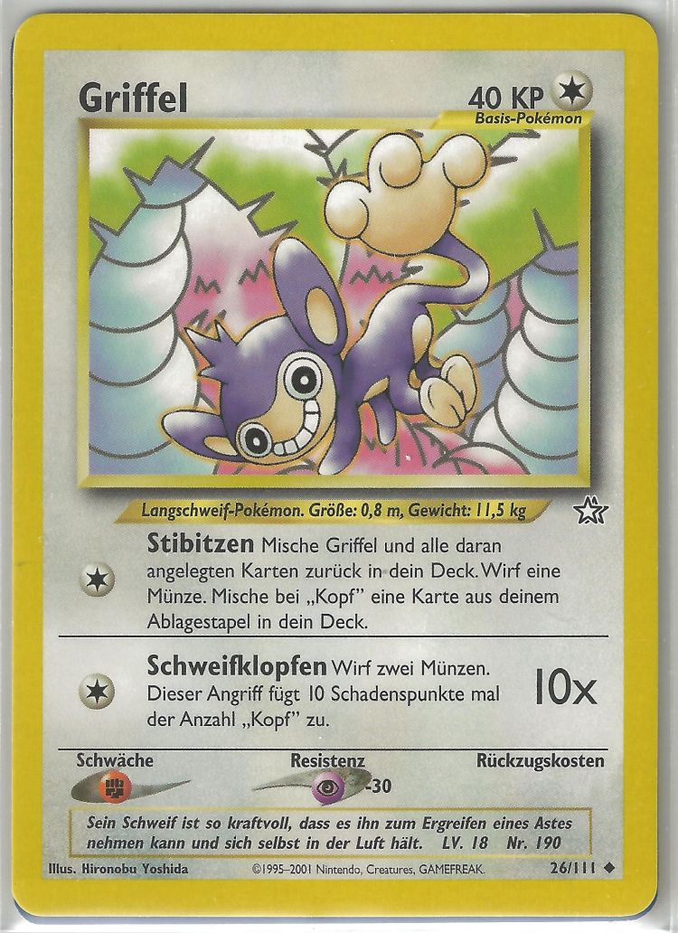 - RS An GRIFFELs Schweif befindet sich ein handähnliches Anhängsel, mit dem es geschickt zu Werke gehen kann. Da dieses POKéMON sehr häufig seinen Schweif einsetzt, wirken seine Hände eher plump.
