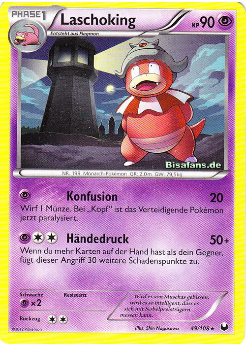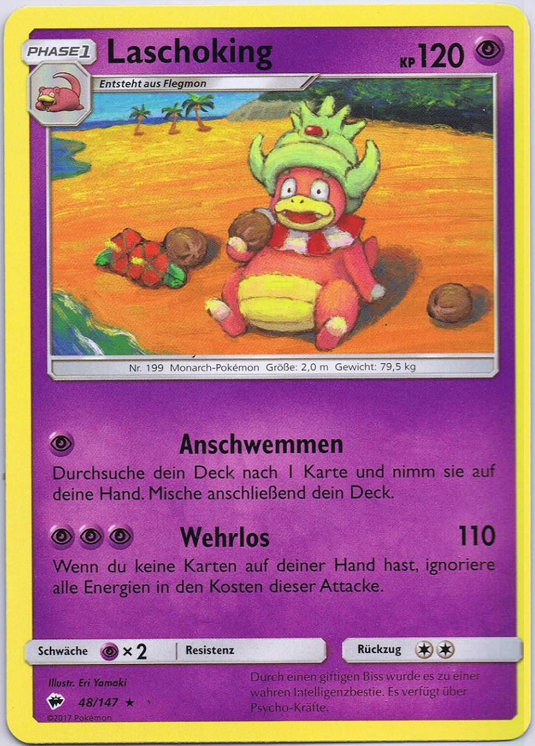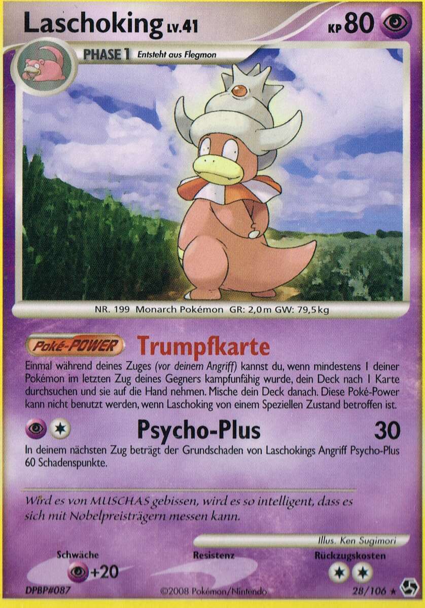 - GO Laschoking betreibt jeden Tag Forschung, um die Geheimnisse der Welt zu lüften. Dieses Pokémon vergisst aber alles, was es bereits herausgefunden hat, wenn das Muschas auf seinem Kopf abfällt.