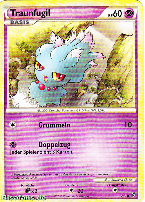 - RS TRAUNFUGIL erschreckt Menschen mit einem markerschütternden Schrei. Dieses POKéMON verwendet seine roten Kraftfelder dazu, die Ängste seiner Feinde aufzunehmen und sie in Nahrung umzuwandeln.