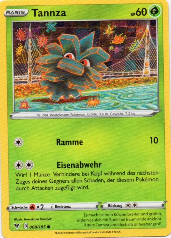 - SW Es sieht aus wie ein Tannenzapfen. Seine Schale schützt es vor Vogel-Pokémon, die an ihm picken wollen.