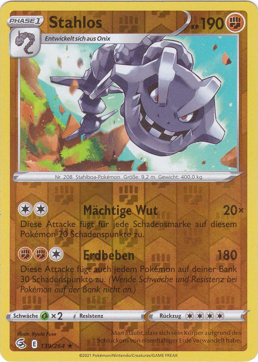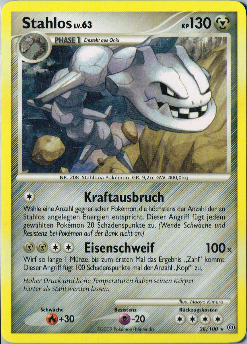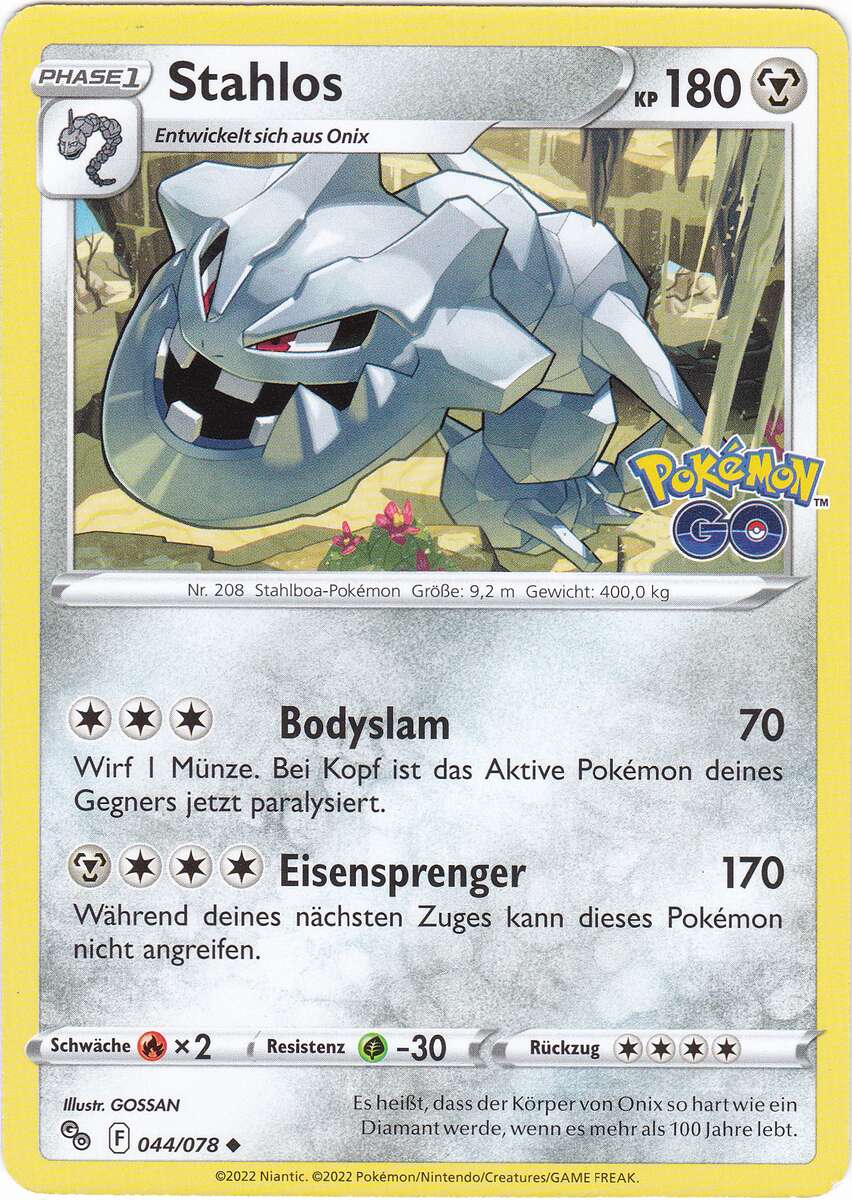 - S STAHLOS lebt noch tiefer unter der Erde als ONIX. Es gräbt immer in Richtung des Erdkerns. Nachweislich hat es bereits Tiefen von einem Kilometer erreicht.
