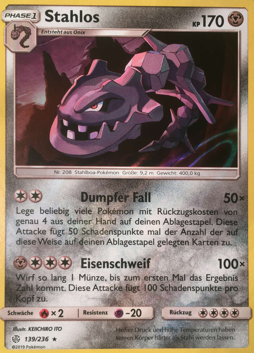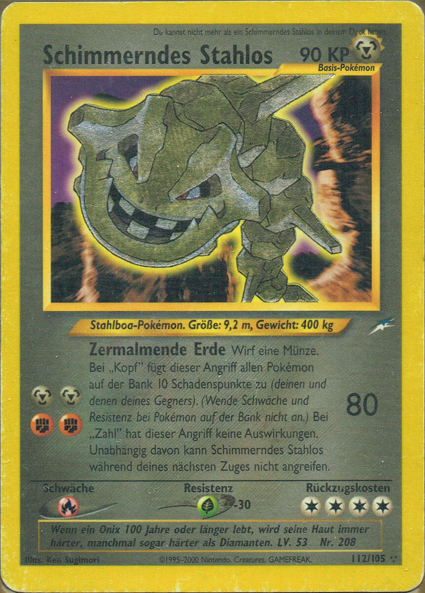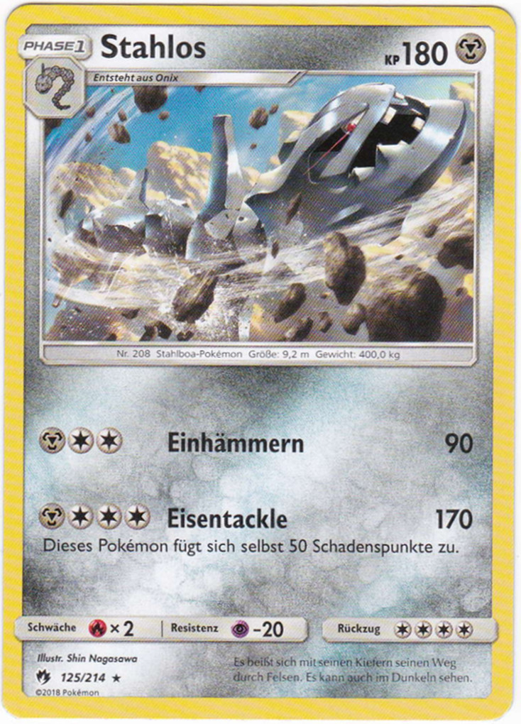- RS STAHLOS lebt noch tiefer unter der Erde als ONIX. Dieses POKéMON gräbt immer in Richtung des Erdkerns. Nachweislich hat dieses POKéMON bereits Tiefen von einem Kilometer erreicht.