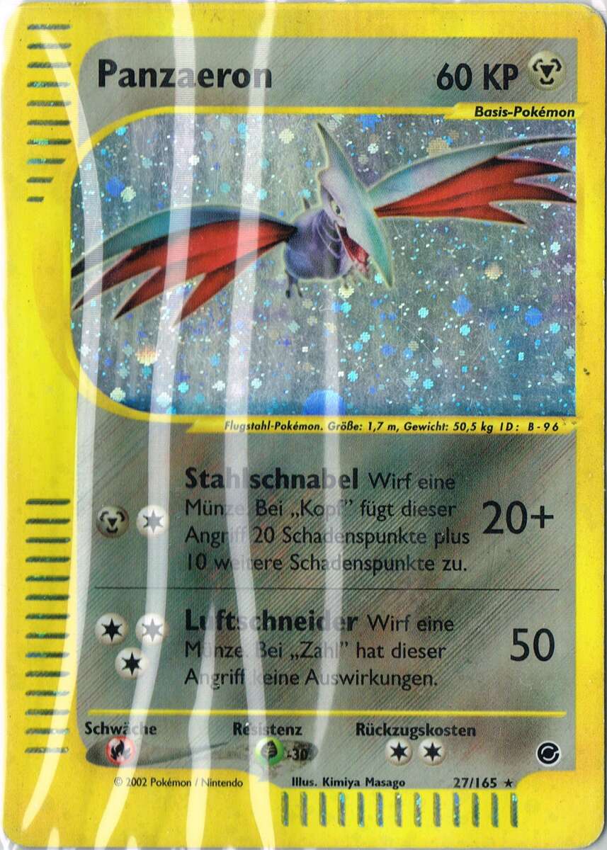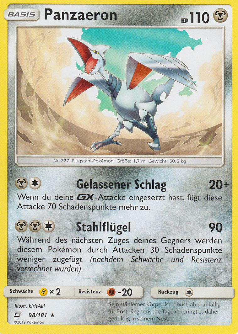 - OR Panzaeron ist komplett in einen harten, schützenden Panzer eingehüllt. Dieses Pokémon fliegt bis zu 300 km/h schnell. Es greift seine Feinde mit seinen messerscharfen Flügeln an.