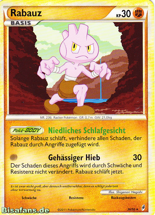 - RS RABAUZ muss jeden Tag trainieren, sonst ist es nicht ausgelastet und reagiert gestresst. Wenn man dieses POKéMON trainiert, muss man zahlreiche Trainingsmethoden einsetzen und sie ständig ausbauen.