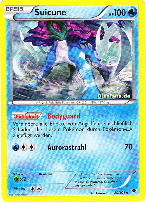 - OR Suicune wohnt die Reinheit einer Quelle inne. Es bewegt sich graziös und hat die Macht, schmutziges Wasser zu reinigen.