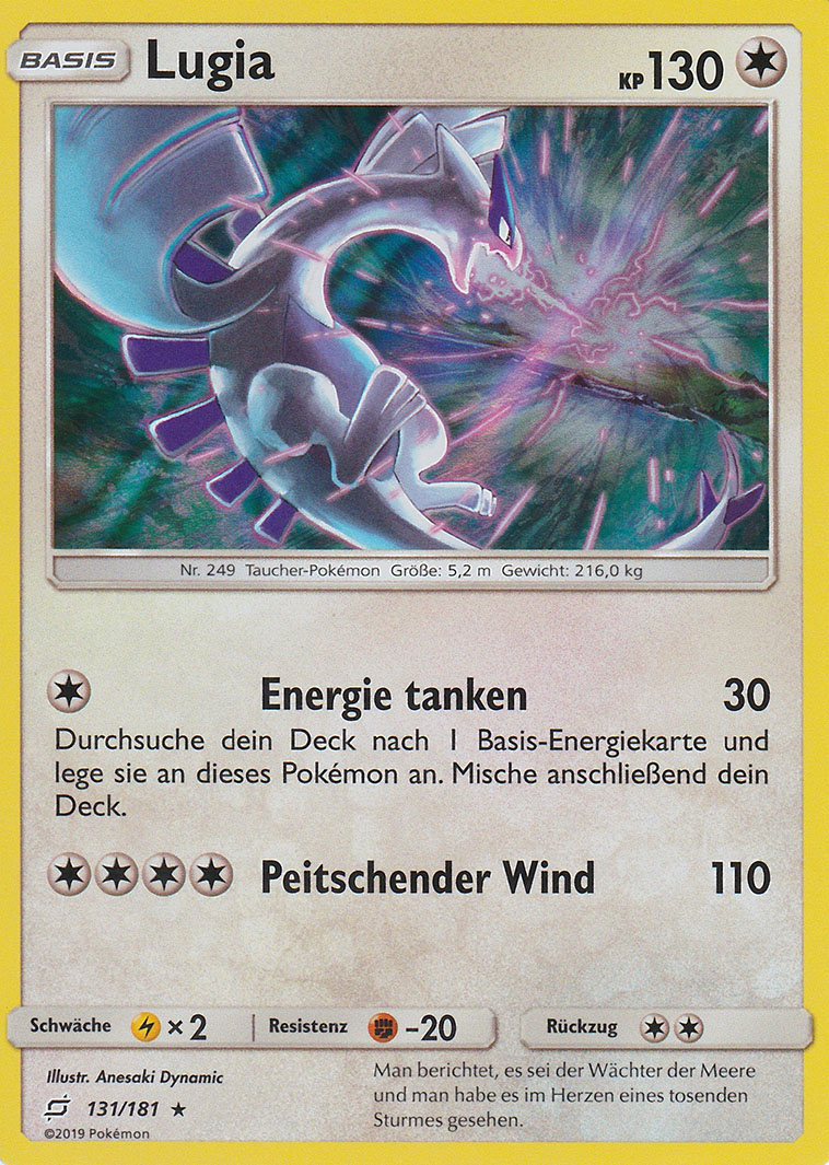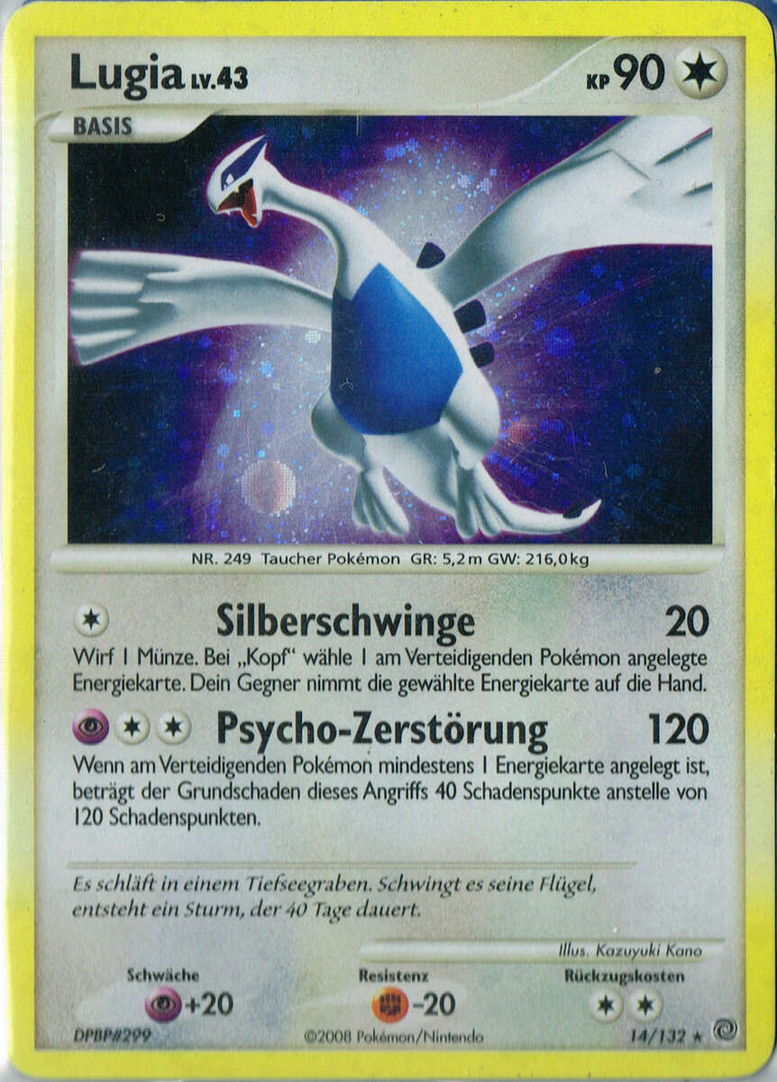 - SDLP Lugia schläft am Grund eines Tiefseegrabens. Es heißt, mit seinem Flügelschlag könne es einen Sturm auslösen, der 40 Tage andauert.