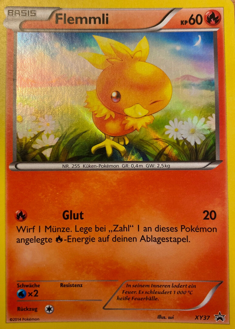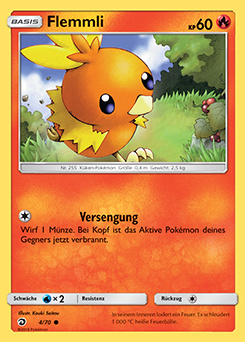 - OR Flemmli hängt an seinem Trainer wie eine Klette. Es schlurft immer hinter ihm her. Dieses Pokémon spuckt 1 000 °C heißes Feuer, das seinen Feinden ordentlich einheizt.