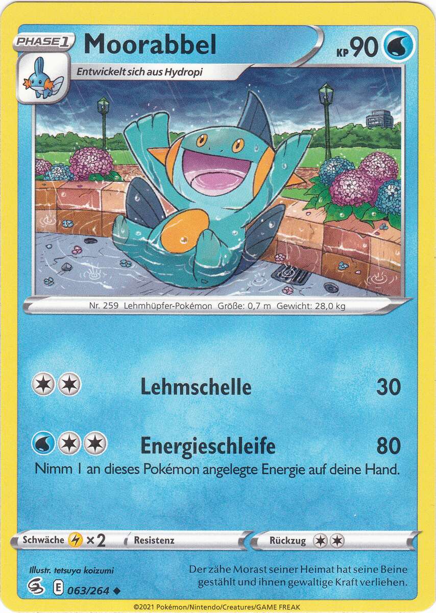 - AS Moorabbel kommt im Schlamm besser voran als im Wasser. Das Hinterteil dieses Pokémon ist gut entwickelt, sodass es auf seinen Hinterbeinen laufen kann.