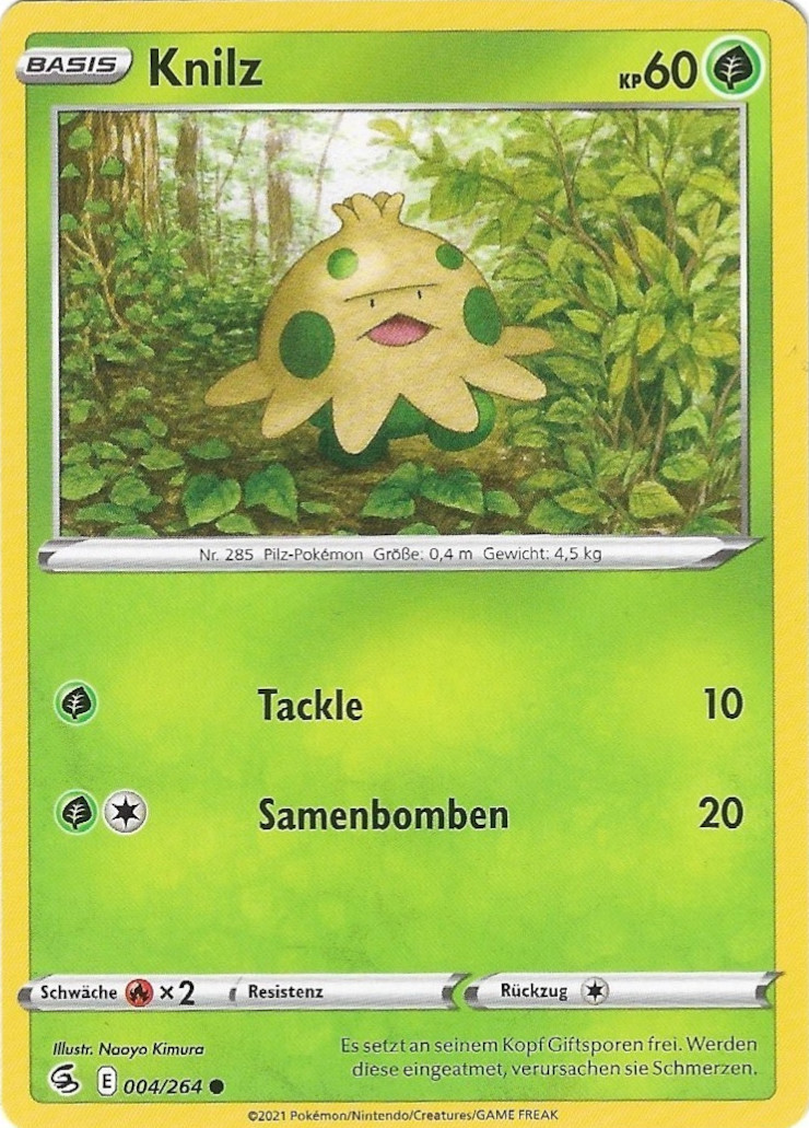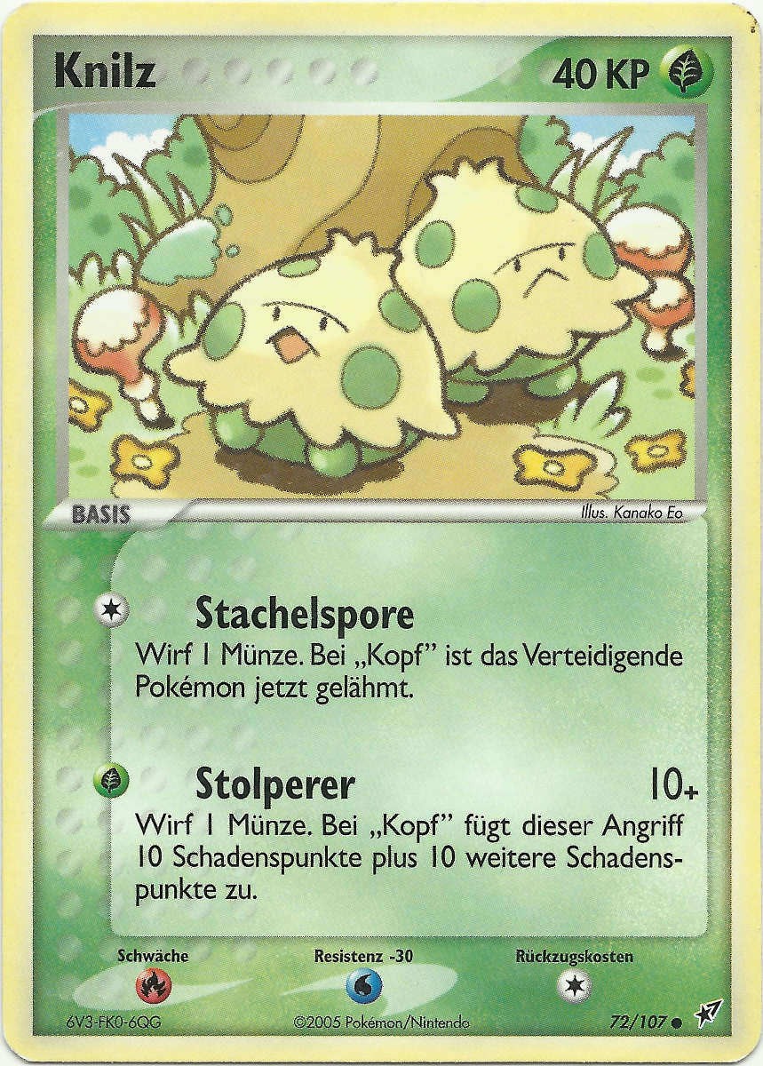 - R KNILZ lebt im feuchten Erdboden finsterer Wälder. Es wird oft reglos unter herabgefallenen Blättern gefunden. Dieses POKéMON ernährt sich von Kompost aus verrotteten Blättern.