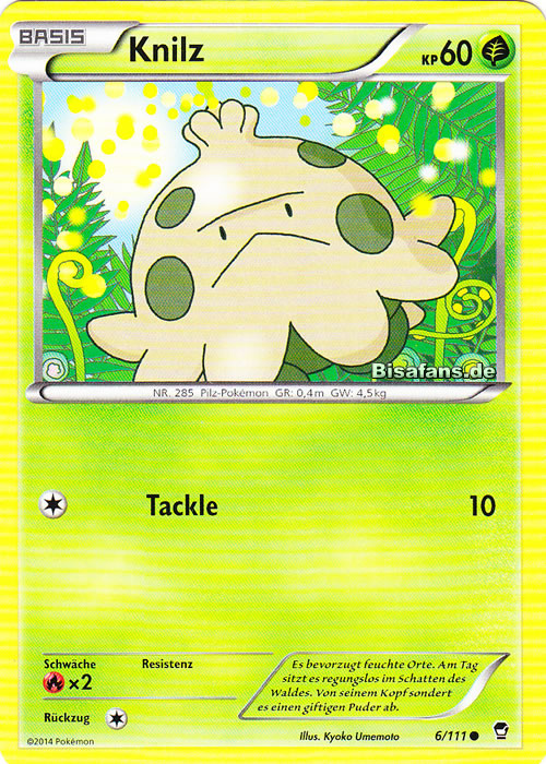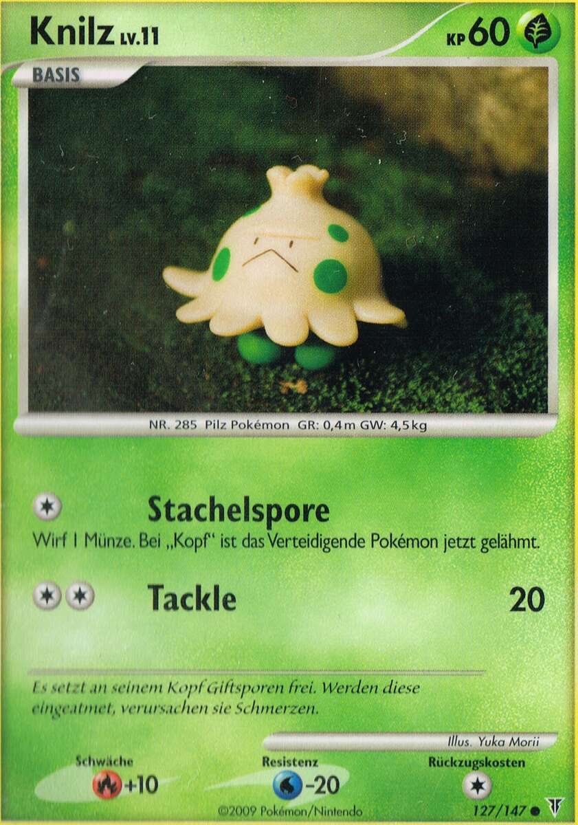 - GO Knilz lebt im feuchten Erdboden finsterer Wälder. Es wird oft regungslos unter herabgefallenen Blättern gefunden. Dieses Pokémon ernährt sich von Kompost aus verrotteten Blättern.
