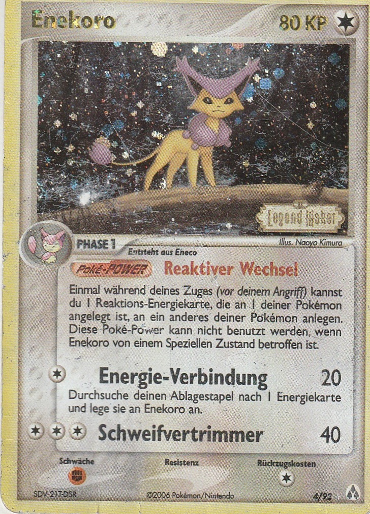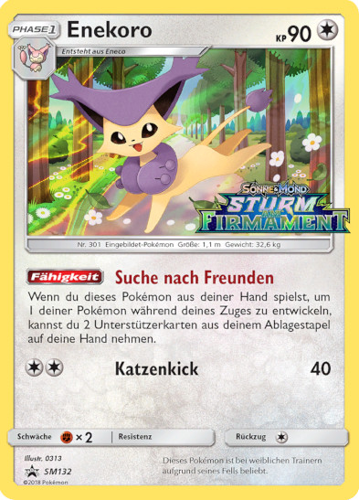 - AS Enekoro schläft dort, wo es ihm gefällt und hat kein dauerhaftes Nest. Nähern sich ihm andere Pokémon, wenn es schläft, kämpft es nicht mit ihnen, sondern zieht weiter.