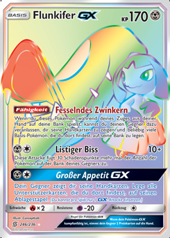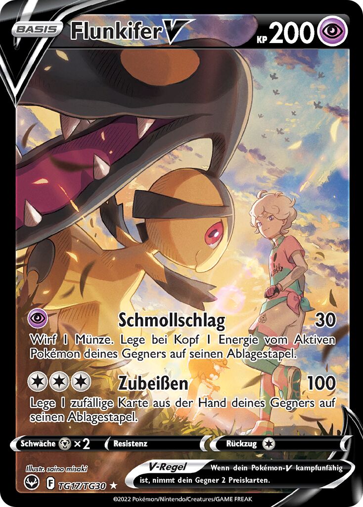- S Fall bloß nicht auf das hübsche Gesicht dieses POKéMON herein - es ist sehr gefährlich. FLUNKIFER lenkt seine Feinde ab und schlägt dann mit seinem massiven Kiefer zu. Seine kräftigen Stahlkiefer sind eigentlich umgewandelte Hörner.