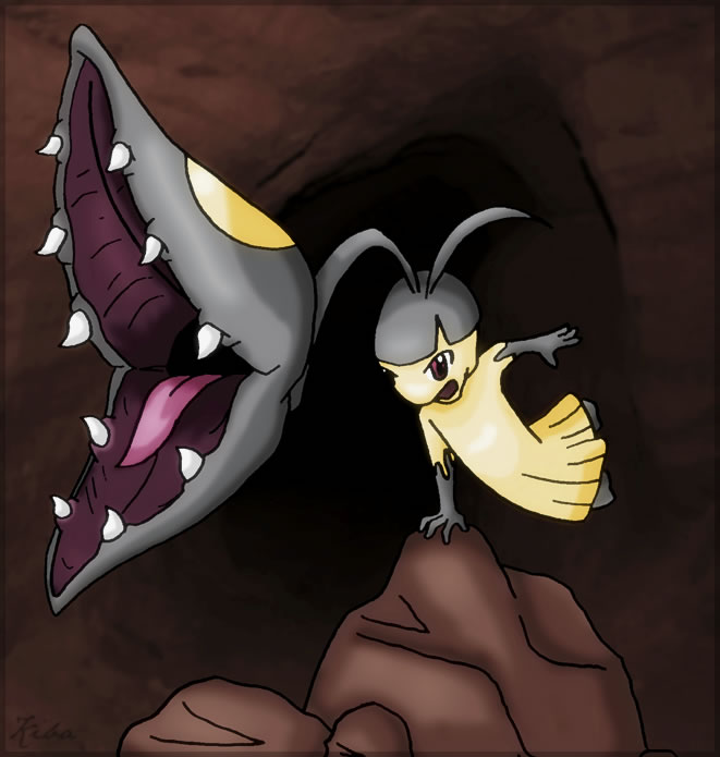 - R FLUNKIFERs sagenhafte Kiefer sind eigentlich umgewandelte Stahlhörner. Sein unterwürfiger Gesichtsausdruck dient dazu, seinen Gegner in Sicherheit zu wiegen, so dass er unaufmerksam wird. Dann schnappt es zu!