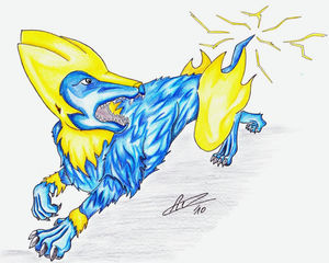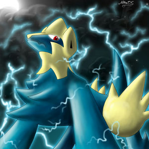- HGSS Man sagt, es baue sein Nest dort, wo Blitze einschlagen. Aus seiner Mähne entlädt es Elektrizität.
