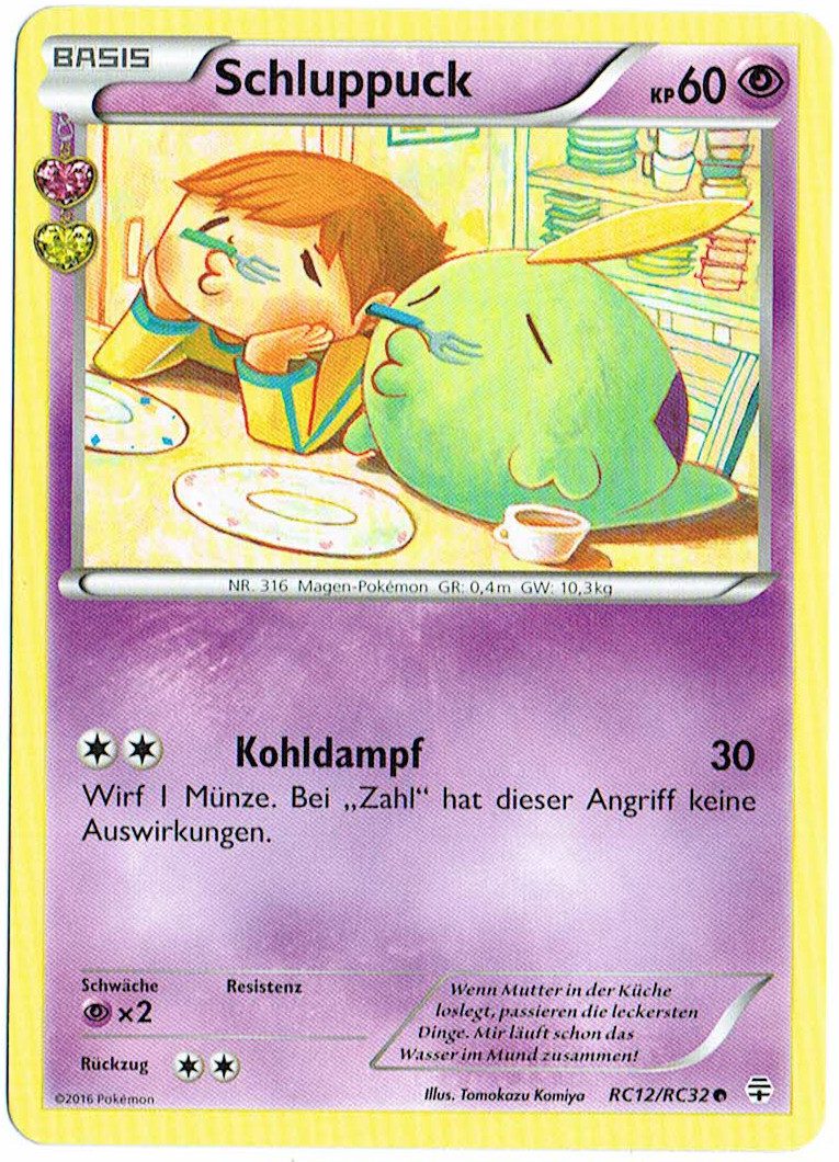 - AS Schluppucks Körper besteht zum größten Teil aus seinem Magen. Sein Herz und sein Gehirn sind im Vergleich dazu sehr klein. Der Magen dieses Pokémon enthält Enzyme, die alles zersetzen können.