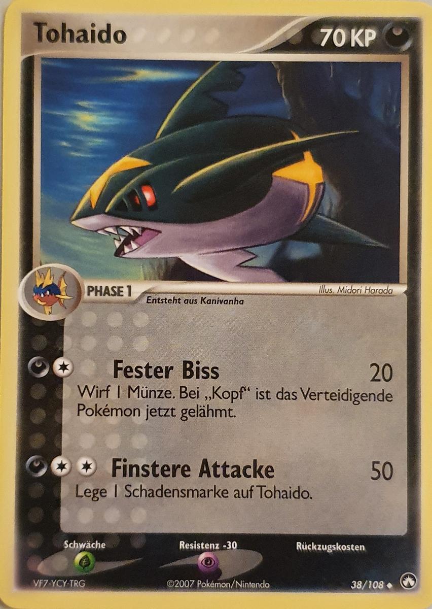 - GO Tohaido trägt den Spitznamen „Tyrann des Meeres” und ist sehr gefürchtet. Seine grausamen Zähne wachsen sofort nach, wenn sie ausgebrochen sind. Es kann sogar einen Öltanker zerreißen.