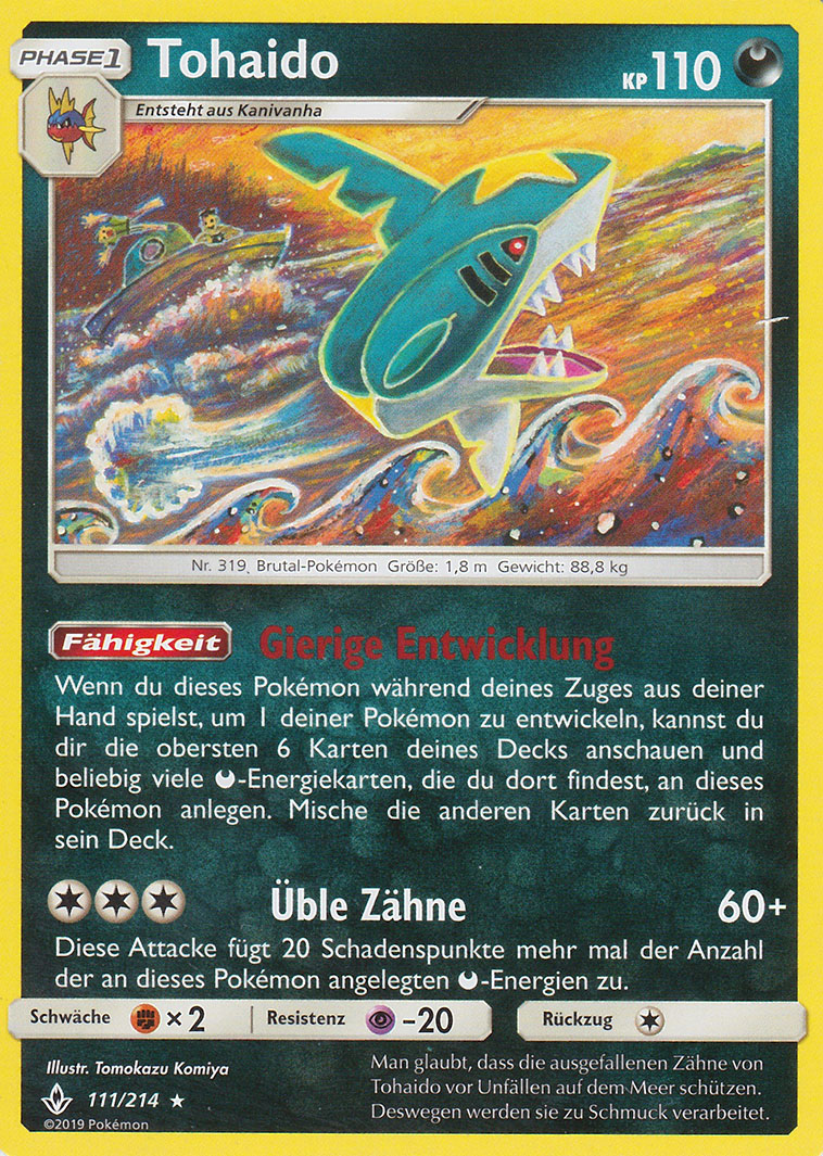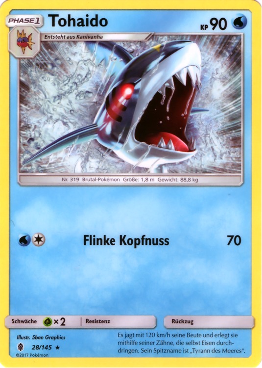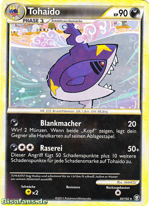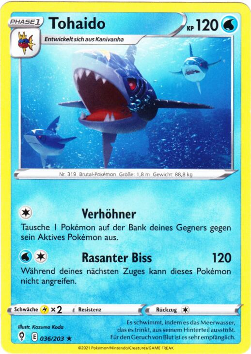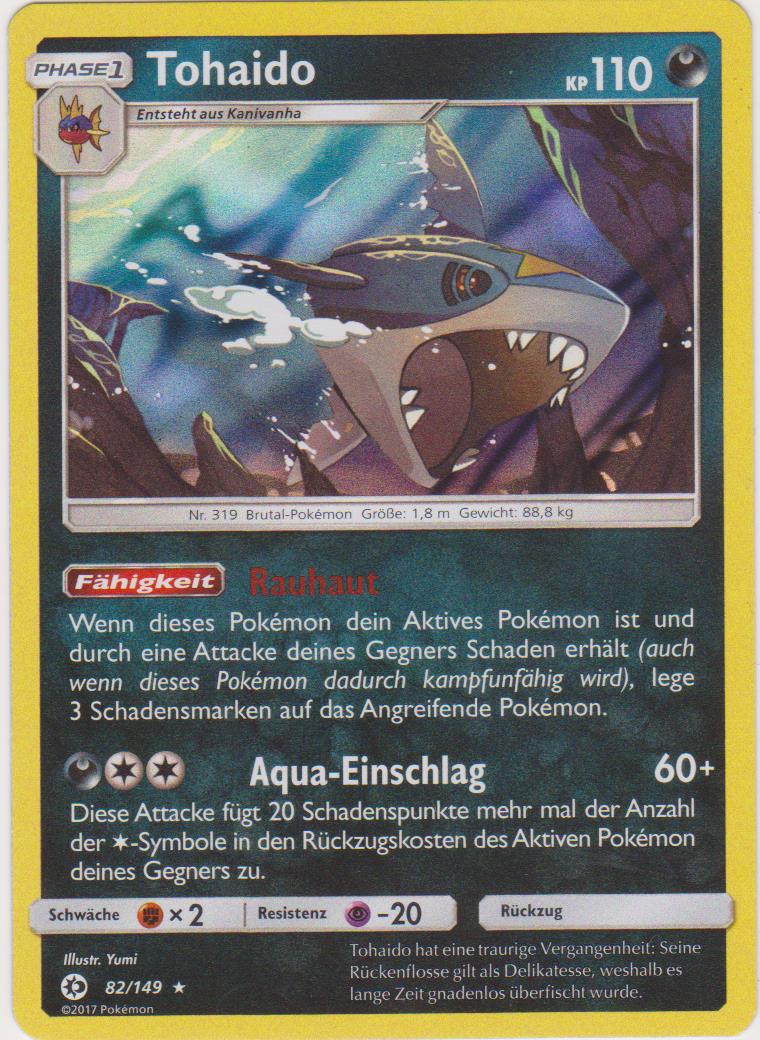 - AS Tohaido kann bis zu 120 km/h schnell schwimmen, indem es Meerwasser aus seinem Hinterteil herausschießt. Dieses Pokémon kann jedoch keine weiten Strecken zurücklegen.