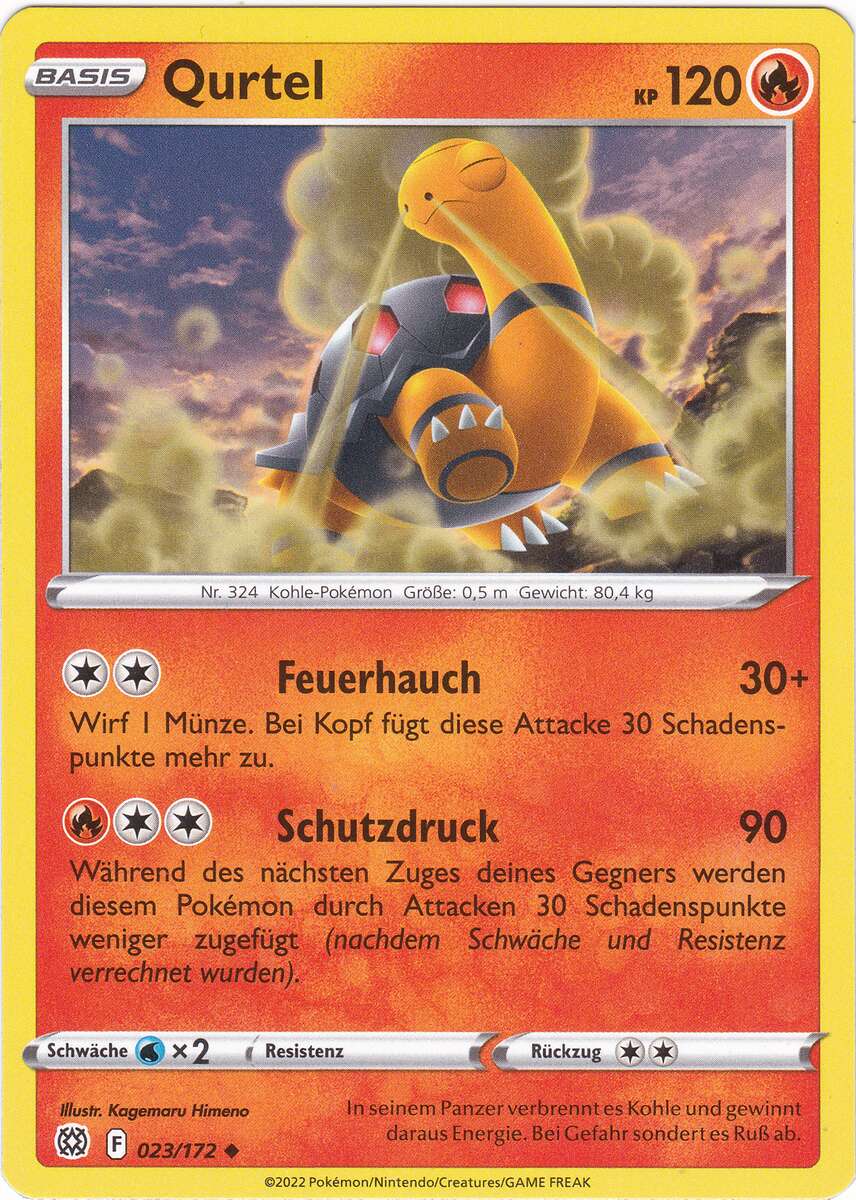 - AS Qurtel erzeugt Energie, indem es Kohle verbrennt. Wenn das Feuer nachlässt, wird es schwächer. In der Vorbereitung auf einen Kampf verbrennt dieses Pokémon mehr Kohle.