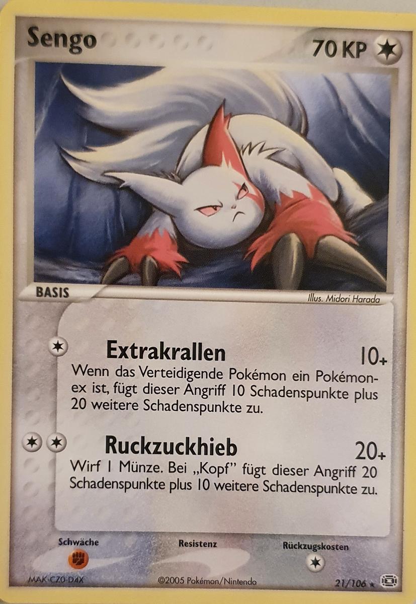 - R Die Erinnerungen an den Kampf mit seinem Erzrivalen VIPITIS haben sich in jede Zelle von SENGOs Körper eingebrannt. Dieses POKéMON weicht feindlichen Angriffen unheimlich raffiniert und geschickt aus.