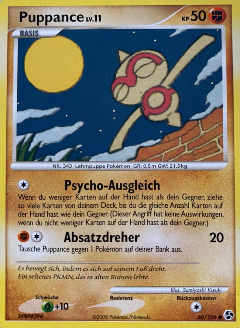 - HGSS Es bewegt sich, indem es auf seinem Fuß kreiselt. Vereinzelt sieht man PUPPANCE, die kopfüber kreiseln.