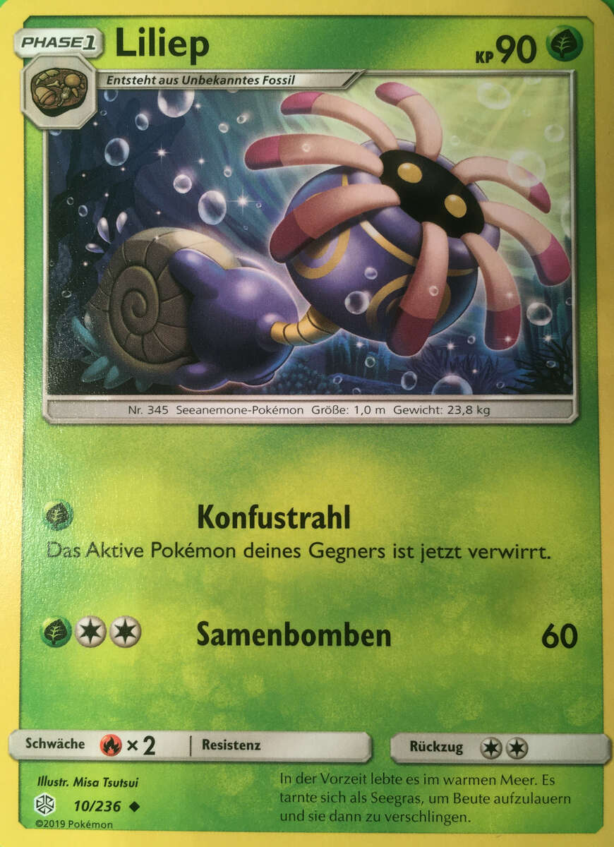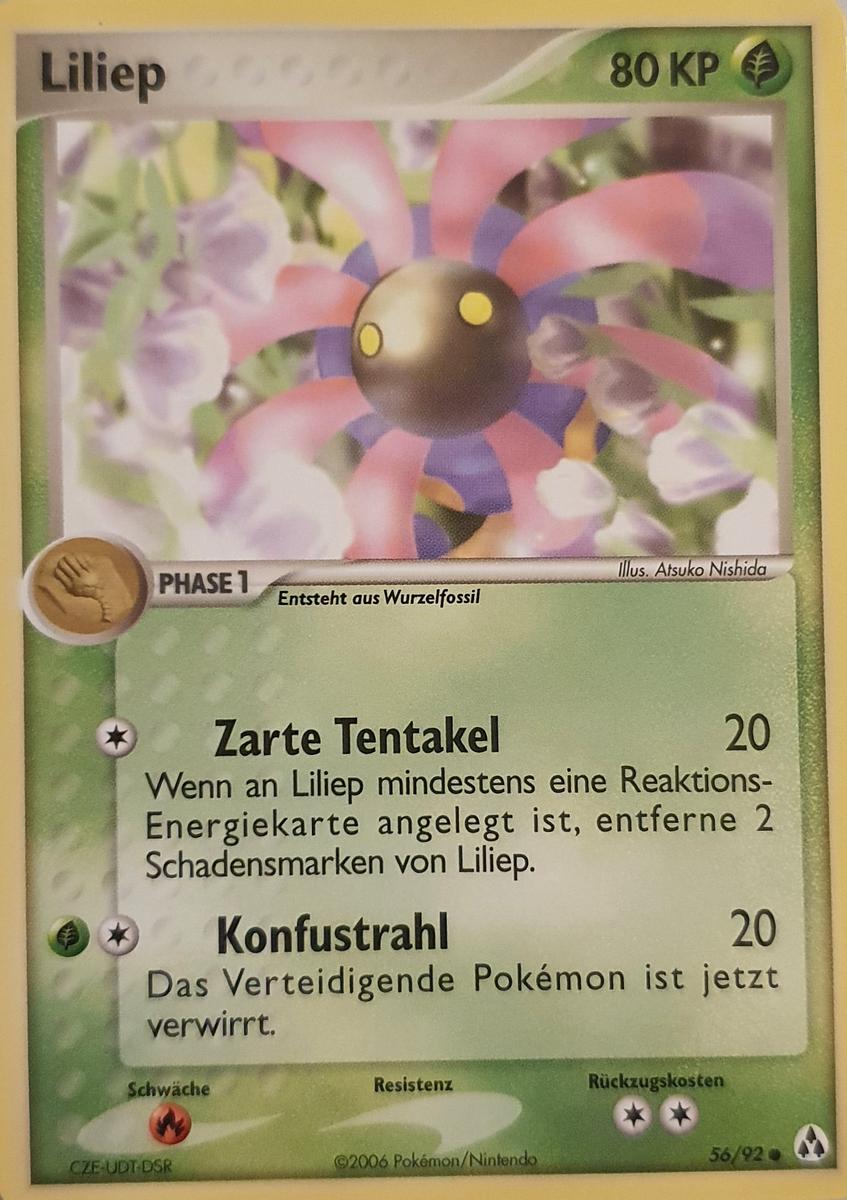 - AS Liliep ist ein urzeitliches Pokémon, das aus einem Fossil erzeugt wurde. Es bleibt ständig an einem Felsen verankert. Mit seinen beiden Augen hält es ständig Ausschau nach Beute.