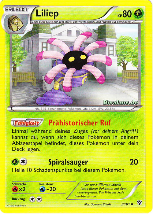 - SWKS Dieses Pokémon wurde aus einem Fossil wiederbelebt. Vor etwa 100 Millionen Jahren war es in warmen Meeren zu Hause.