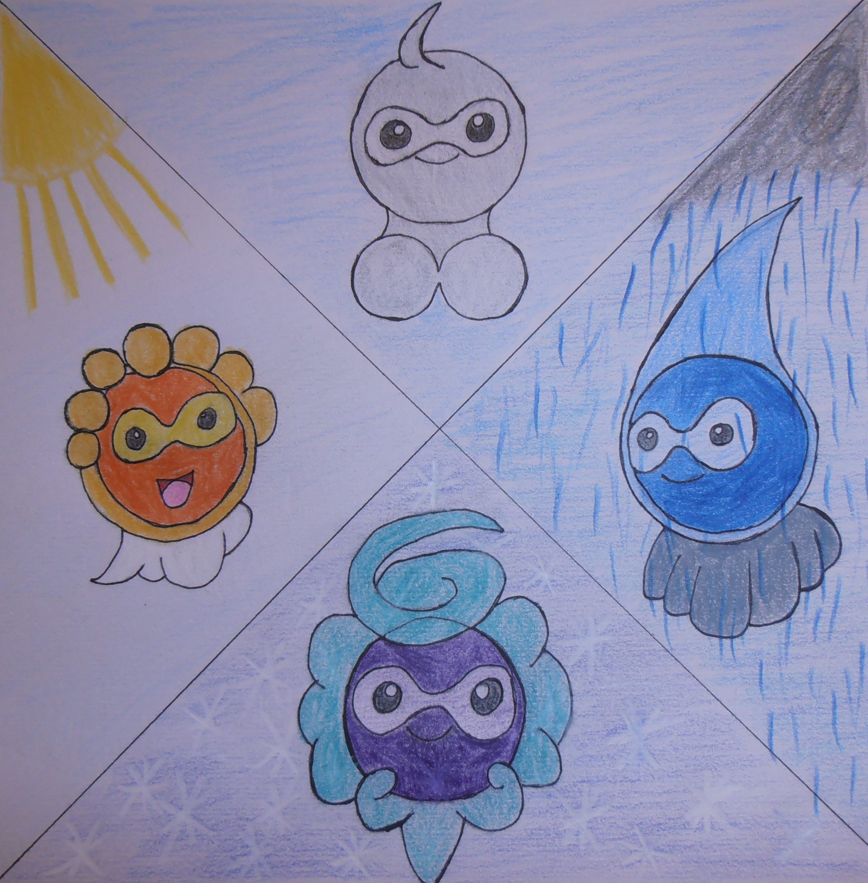 - S2W2 Dieses Pokémon ändert je nach Wetter die Gestalt, da seine Zellstruktur auf Temperatur und Feuchtigkeit reagiert.