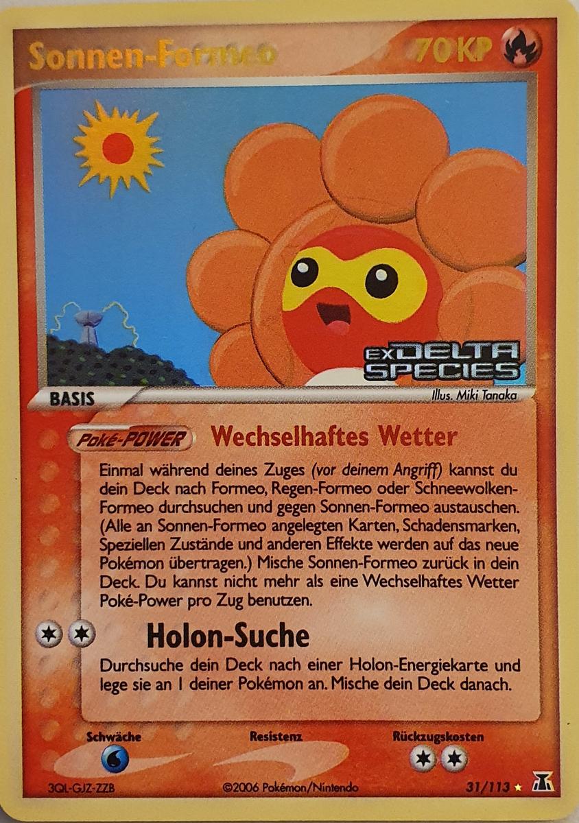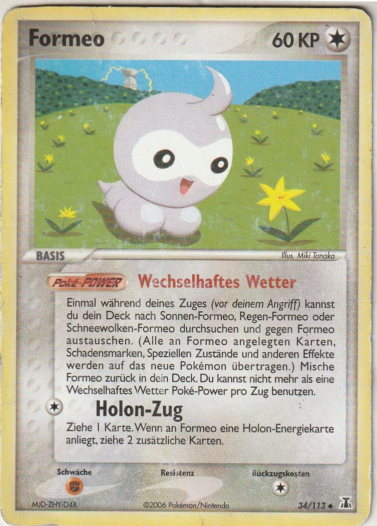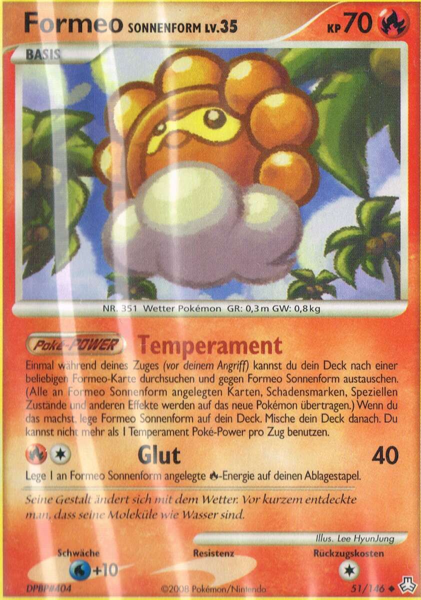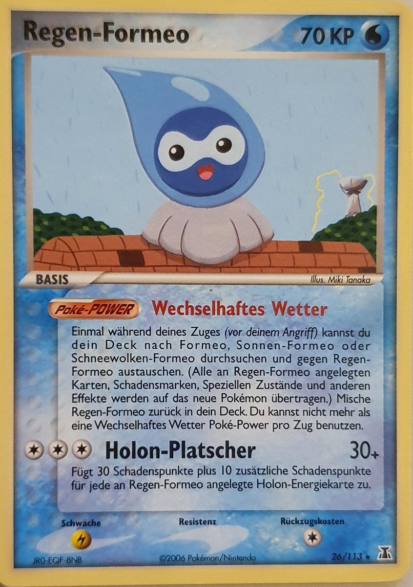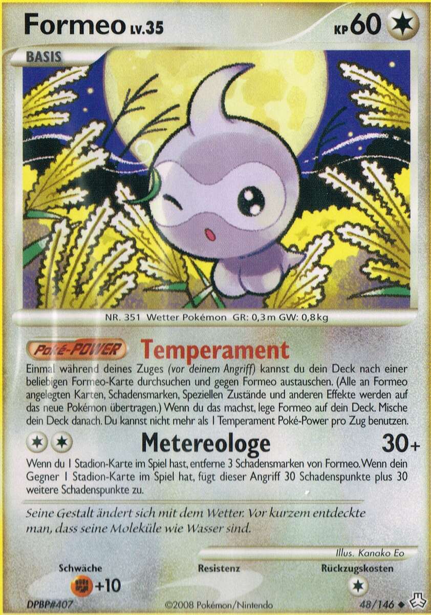 - AS Formeo bedient sich der Kraft der Natur, um die Gestalt der Sonne, des Regens oder von Schneewolken anzunehmen. Die Gefühlslage dieses Pokémon verändert sich mit dem Wetter.