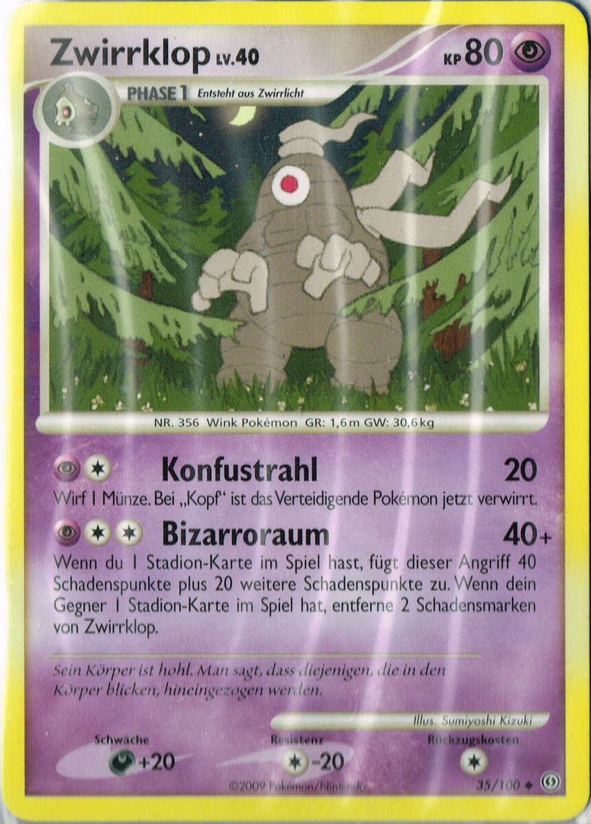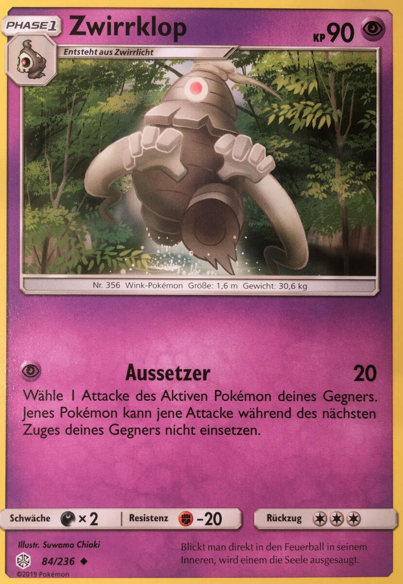 - S ZWIRRKLOP absorbiert alles, egal, wie groß es auch sein mag. Dieses POKéMON hypnotisiert seinen Gegner, indem es auf makabre Weise winkt und sein einziges Auge zeigt. Der hypnotisierte Gegner führt dann seine Befehle aus.
