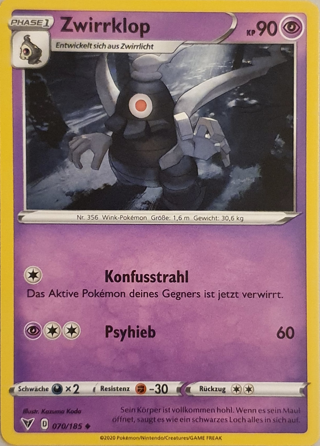 - OR Zwirrklops Körper ist komplett hohl. Es wird auch mit einem Schwarzen Loch verglichen. Dieses Pokémon nimmt alles in seinem Körper auf, es kommt jedoch nichts wieder heraus.