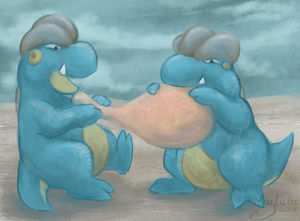 - US Jedes Mal, wenn es ein Vogel-Pokémon am Himmel fliegen sieht, zerstört es vor Neid alles in seiner Umgebung mit Kopfstößen.
