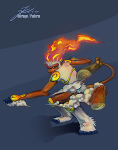 - P Es verwendet einzigartige Attacken mit dem Feuer an seinen Händen und Füßen. Stellt sich jedem Gegner.