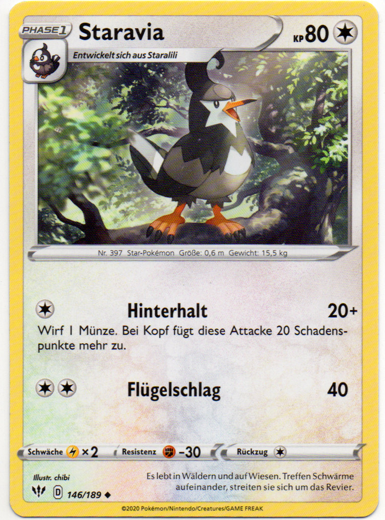 - S2W2 Staravia verbergen ihre Schwäche in Gruppen. Sind sie allein, kann man sie an ihren lauten Rufen erkennen.