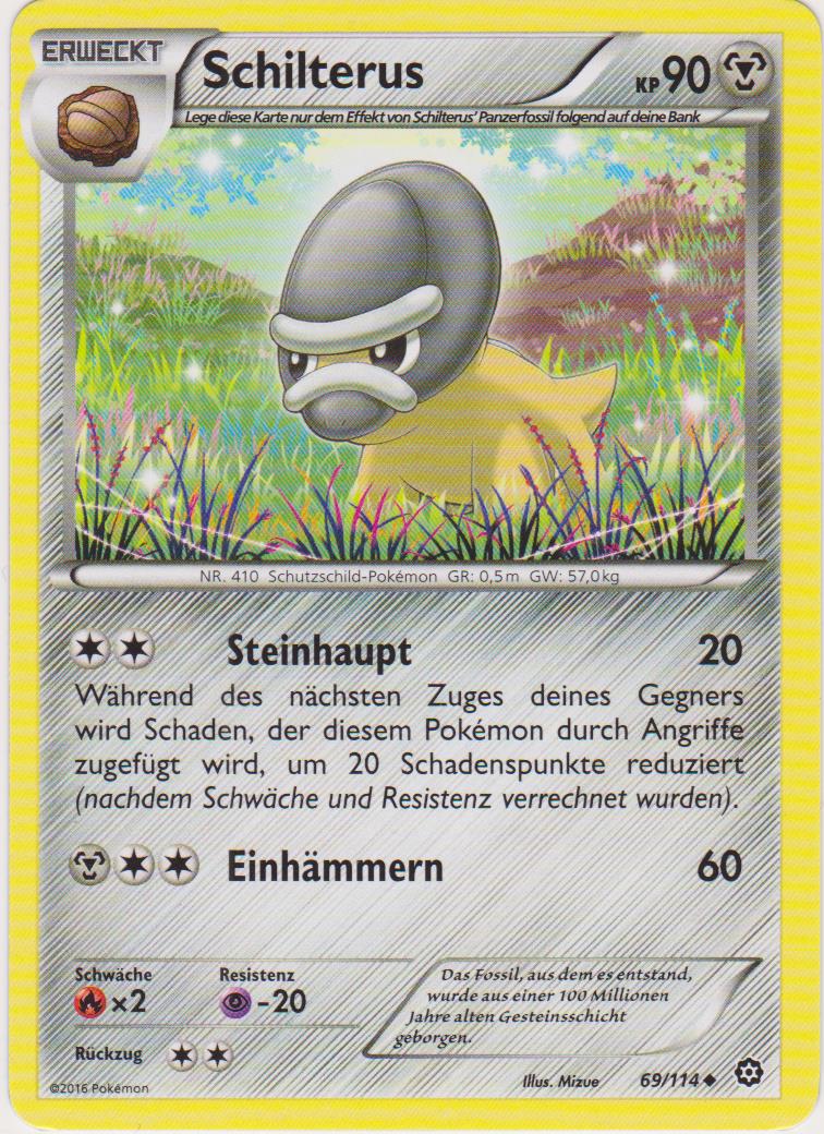 - S Es wurden viele Fossilien dieses Pokémon gefunden und nur bei sehr wenigen war das Gesicht beschädigt oder fehlte ganz.